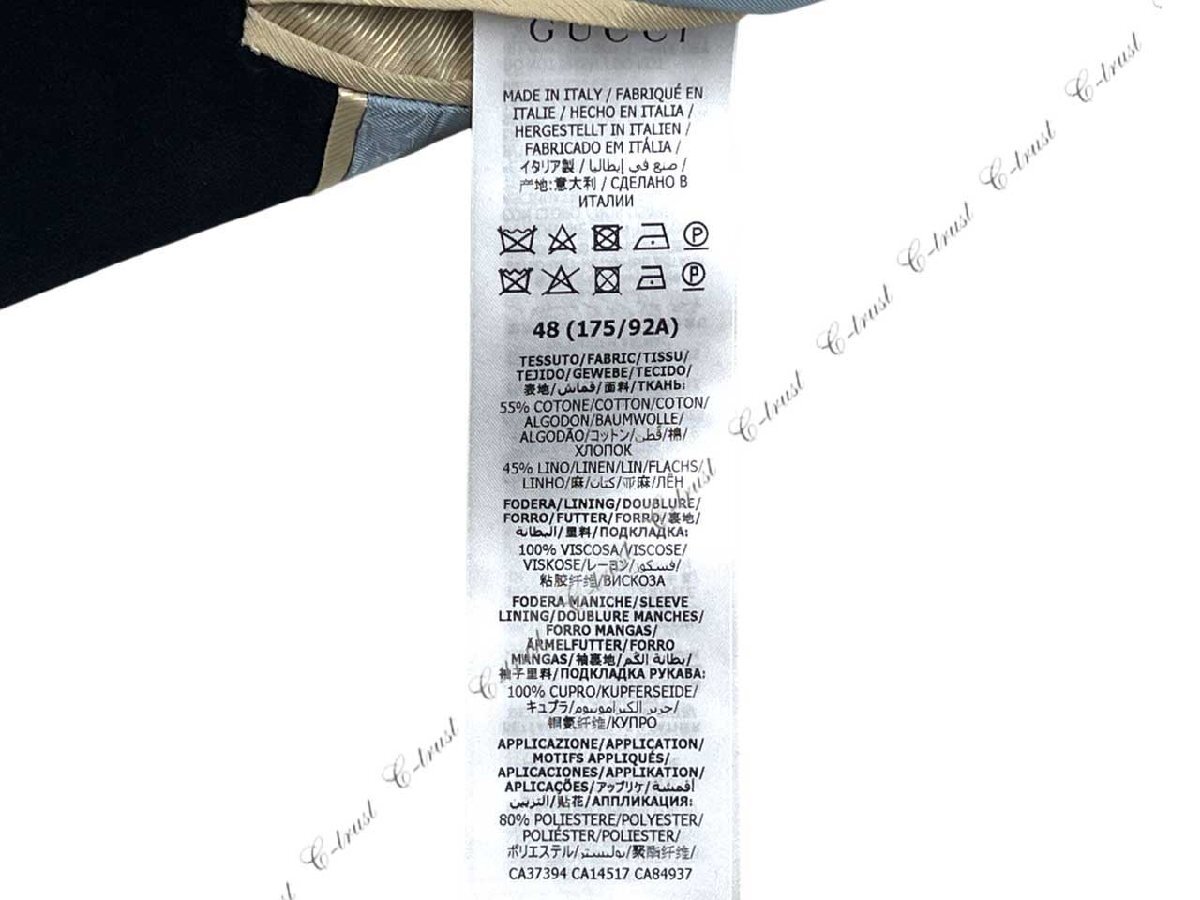L316-48.. GUCCI グッチ ジャケット JK テーラード ワッペン ベルベット ビロード ロゴ シングル イタリア製 ★ 1000 ブラック