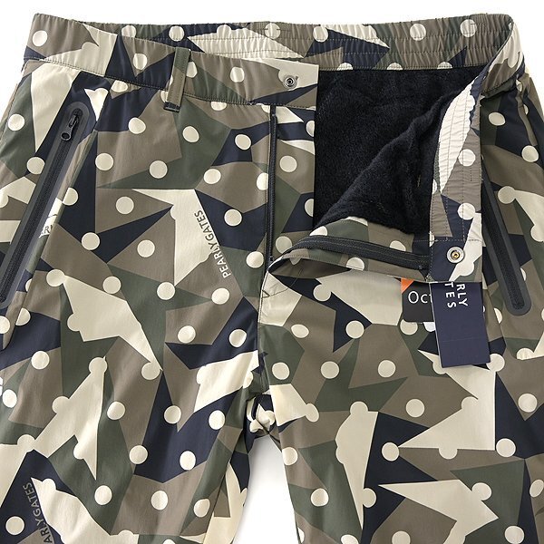 中綿と裏生地を一体化した革命的な快適素材のオクタCPCPを採用した、カモドット柄の2WAYストレッチタフタ×トリコットハイテンションロングパンツ。 ソフトな肌触りと軽くて快適性に優れたストレッチ高機能素材の「meryl microfiber」を表地に使用し、スムーズなスイングとキレイなシルエットのキープにも効果を発揮します。 防風性にも優れた高密度に織られた丈夫なナイロンの表地と、空気をたくさん含み高い軽量性と、保温性、断熱性、吸汗速乾性を実現したOCTAを内側に使用。 パーツ毎の適切な別布使い、機能的なポケットワーク、裾サイドファスナー、独自の立体構造などにより着用時の快適性をアップしつつ、膝の曲げ伸ばしを楽にしてスイングの大きな動きにもスムーズに対応します。 ゴルフファー達が求め続けていた、軽さと温かさを実感できる理想的ボトムとして誕生しました。 同シリーズのアウターとセットアップで着用するのもオススメです。 【デザイン】 ・ウエストゴム入り ・ノータック ・ジッパーフライ ・スリムシルエット ・総裏仕立て(起毛トリコット使用) ・フロントはダブルジップ ・裾にサイドジップ付き |