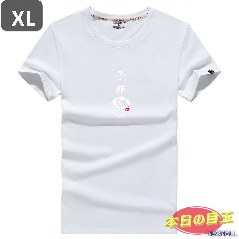 本日のお買得 ☆ 丸首 半袖 Tシャツ【450】 ホワイト XLサイズ トップス シャツ シンプル イラスト デザイン 春夏