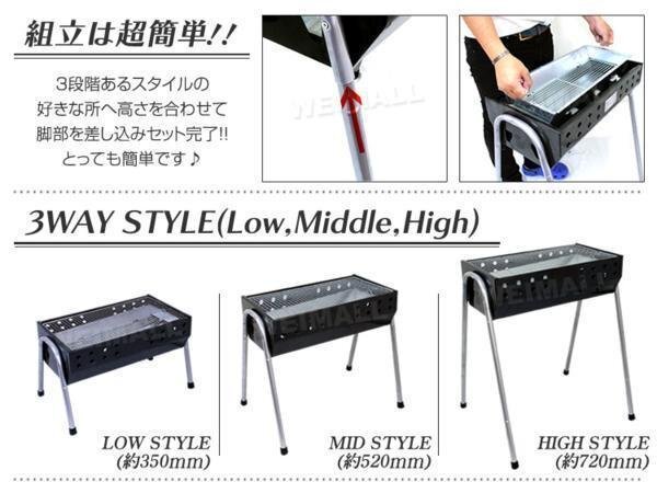 簡単設置&コンパクト! 通気口が多いので火起こしがラクラク! 焼き面積の大きさはやや広めになっており、半分づつ違う料理を作ることも可能! お好みのスタイルに合わせて高さを調節することができます。 炭トレイが付いているので、後片付けラクラク! 脚部を本体に収納できるので、コンパクトになり持ち運びに便利です。 みんなで楽しくバーベキューを! キャンプでのバーベキューはもちろん、海でも庭でも幅広くお使いいただけます。 【商品仕様】 サイズ(約): ・組立時(最大):570×520×720mm ・収納時:630×180×320mm ・網サイズ:540×280mm 重量(約):5.5kg 材質:スチール、クロームメッキ他 適正人数:2~4人 【商品内容】 本体 バーベキュー網 炭トレー 脚(ジョイント長4本、ジョイント短4本) 【注意事項】 ・必ず屋外で使用してください。室内、テント内、換気の悪い場所では使用しないでください。一酸化中毒、酸欠、火災の恐れがあります。 ・組み立て、後片付けは安全のため手袋をはめて行ってください。 ・海外製品で、簡易梱包での輸入のため風防に擦れや多少の小キズなどがある場合がございますが、商品自体には問題ありませんのでご了承下さい。 ・商品は、モニターによって色合いが異なって見える場合があります。 ・仕様・デザインは改良のため予告なく変更することがあります。 |