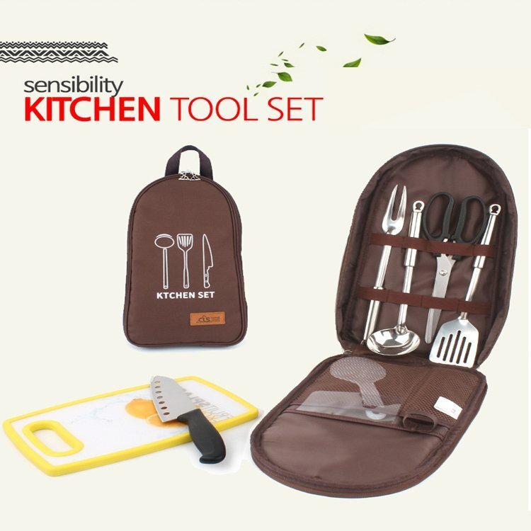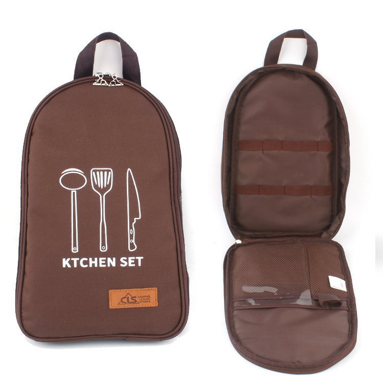 ◆調理器具収納バッグ キャンプバッグ ハサミ スプーン など分けて収納 防災グッズにも アウトドア キャンプ などに SELP7B/ブラウン