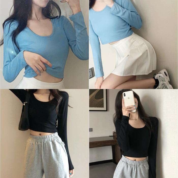 | 商品名 | シンプルトップス Uネック 長袖Tシャツ |