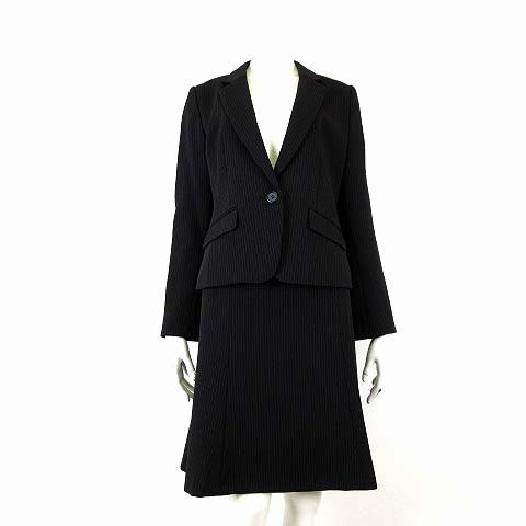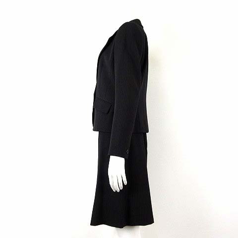 オネイロス ONEIROS スカートスーツ 上下セットアップ ストライプ ステッチ ストレッチ ジャケット テーラード 1ボタン L 11 黒 オフ白