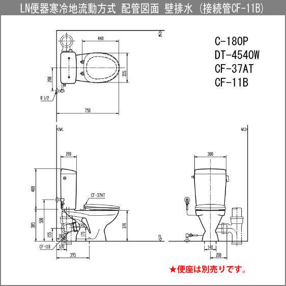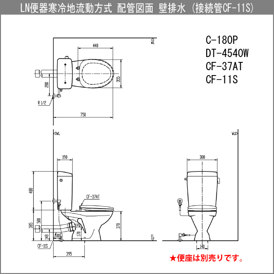 便器 LN便器(手洗なし・壁排水) 寒冷地 流動方式 C-180P,DT-4540W リクシル イナックス LIXIL INAX ★