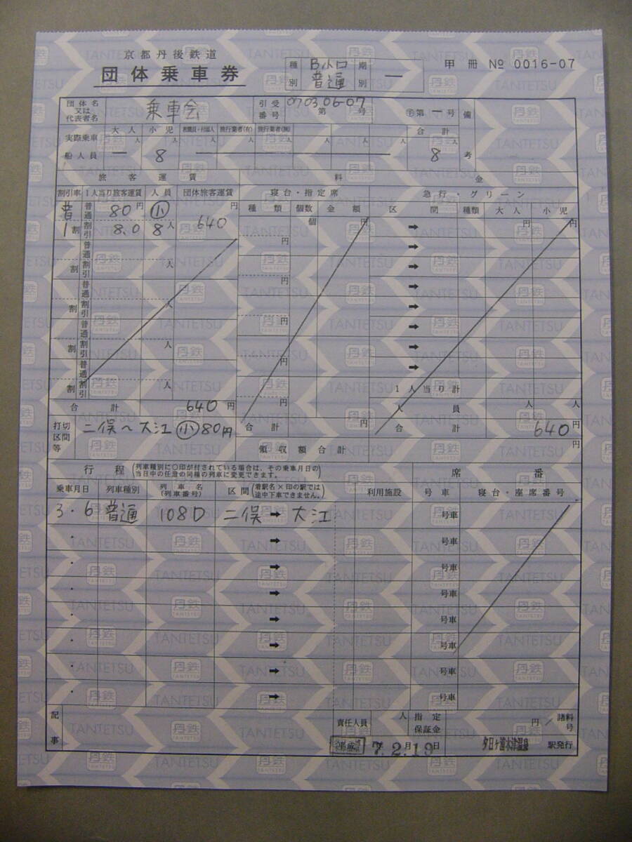 700.京都丹後鉄道 団体乗車券