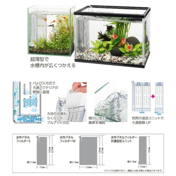 またろ材面積を広く取ることができ、ろ過能力も優れています。更にプルアウト方式のろ材交換機能により簡単にろ材交換ができるようになりました。別売の追加ユニットを使用することによりろ過能力を更にUP、様々な飼育シーンに対応します。