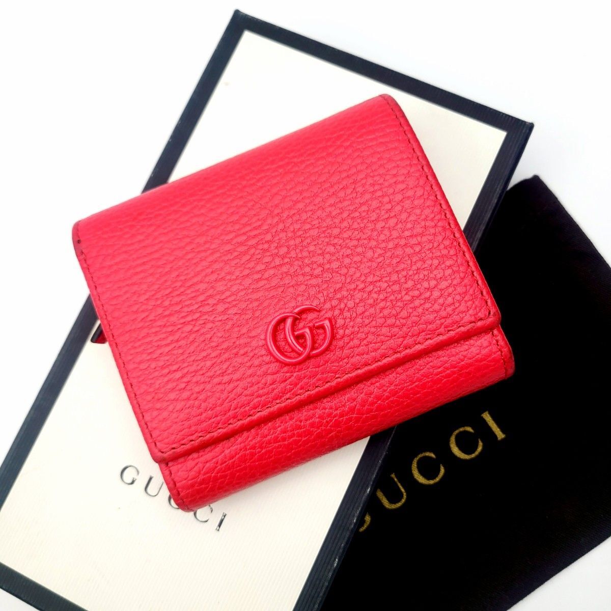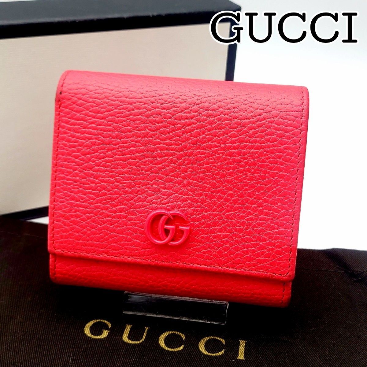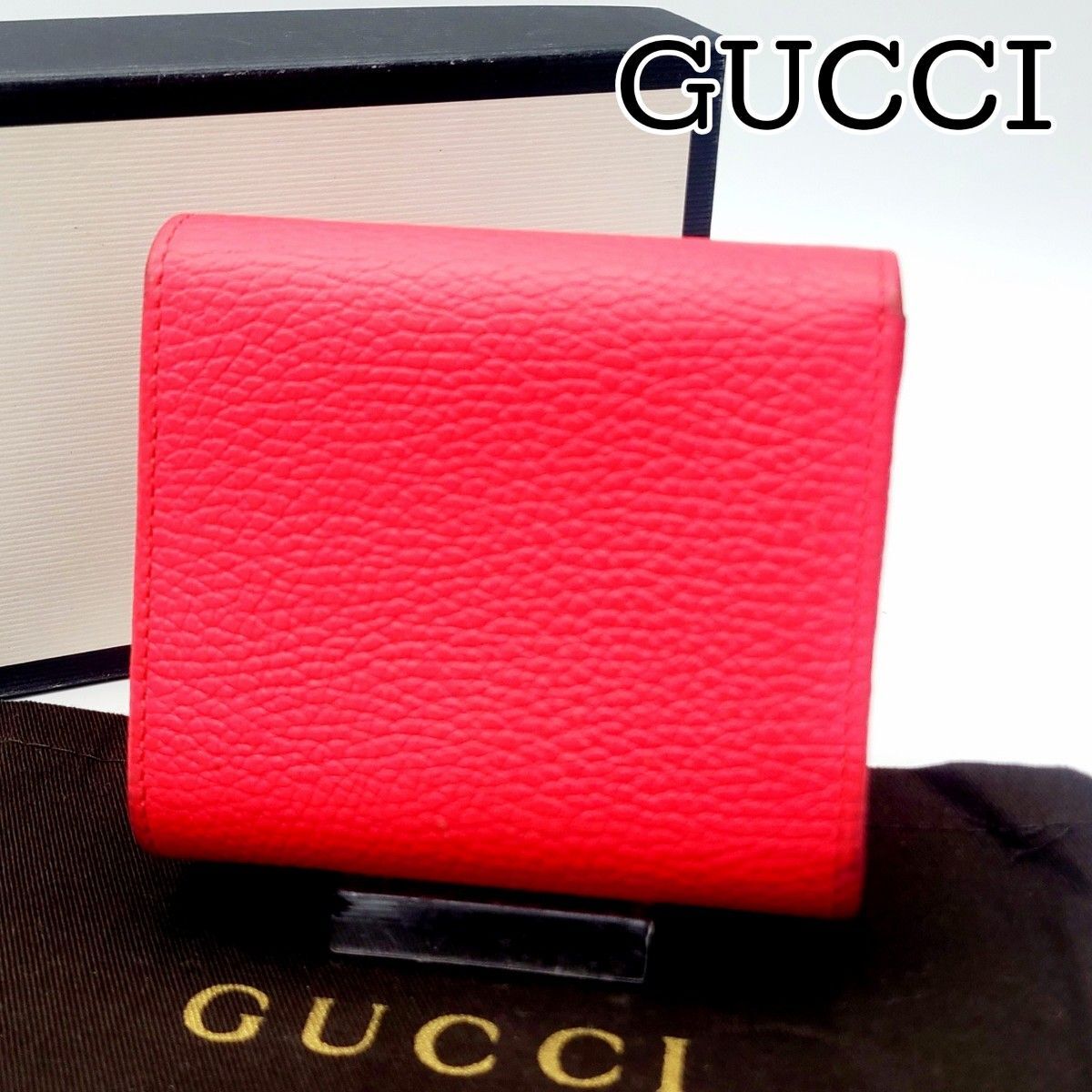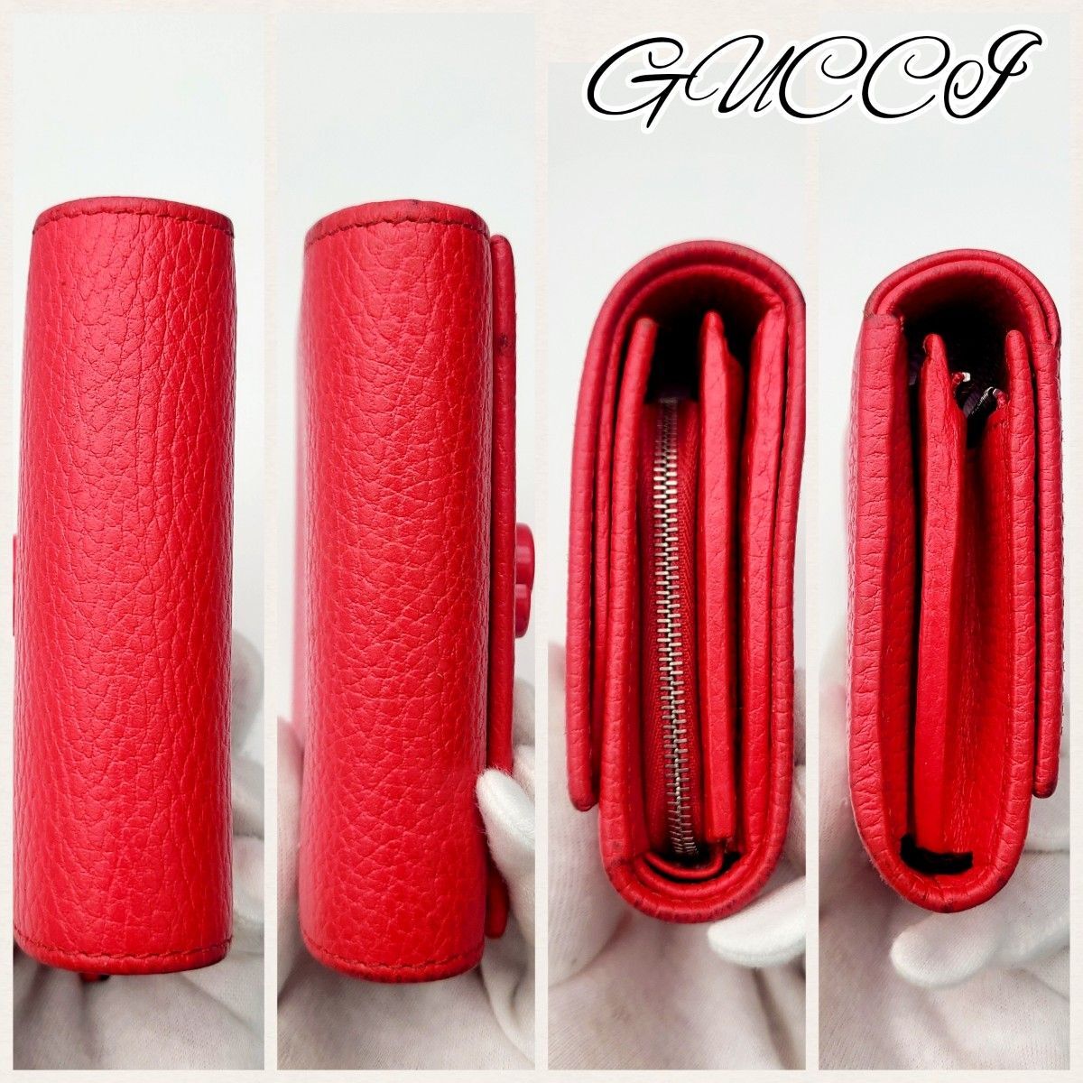 美品 GUCCI グッチ 2つ折り 財布 GGマーモント ピンク 本革 レザー コンパクト 598587