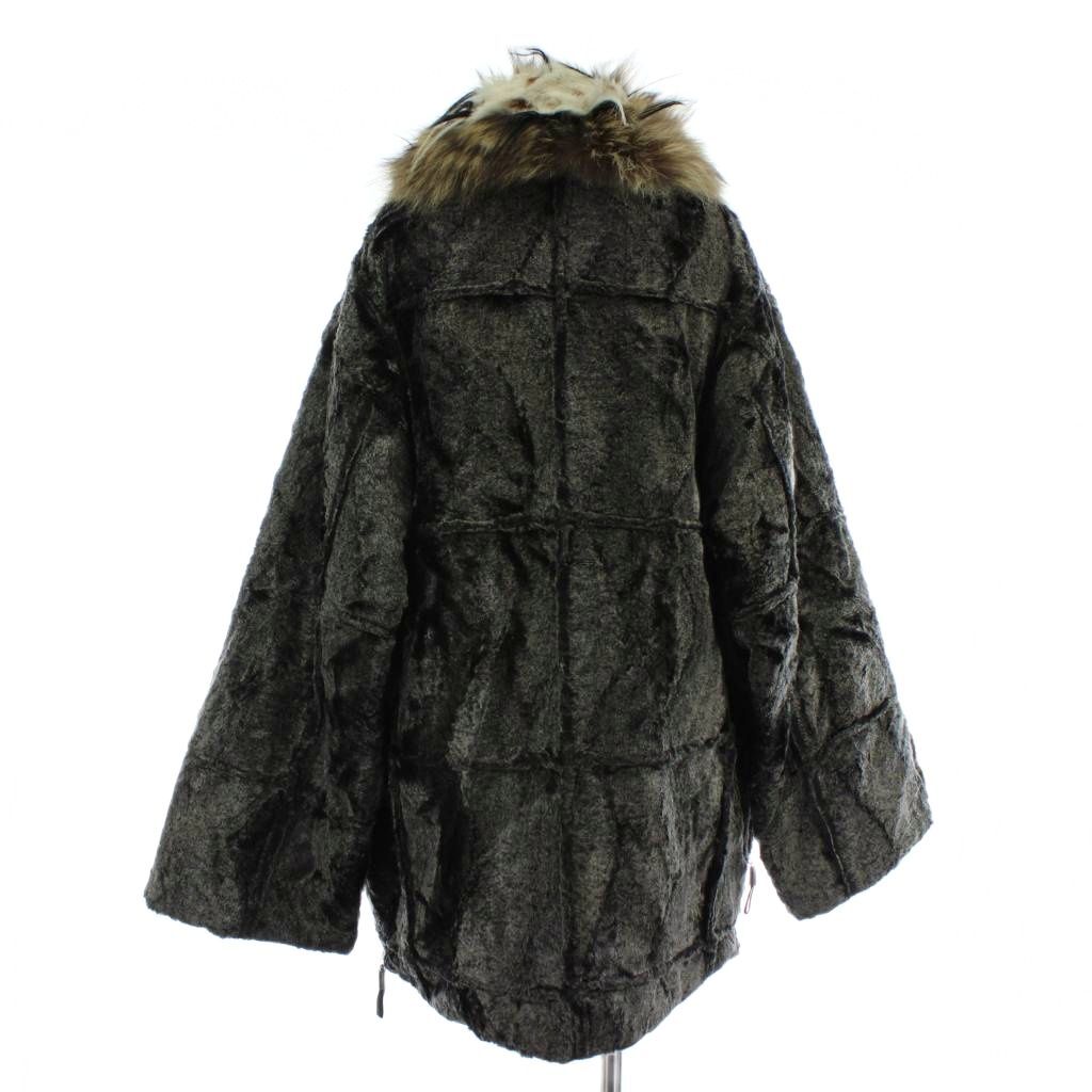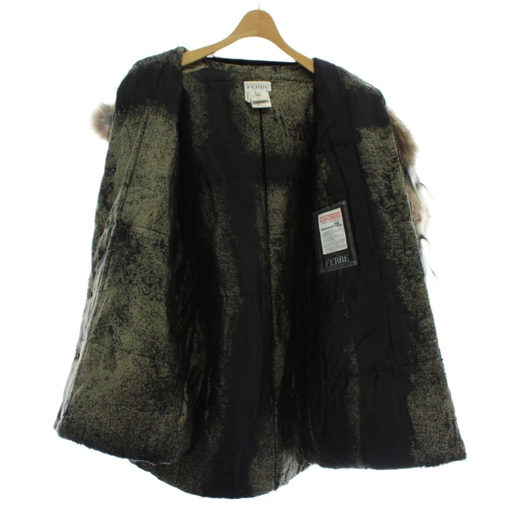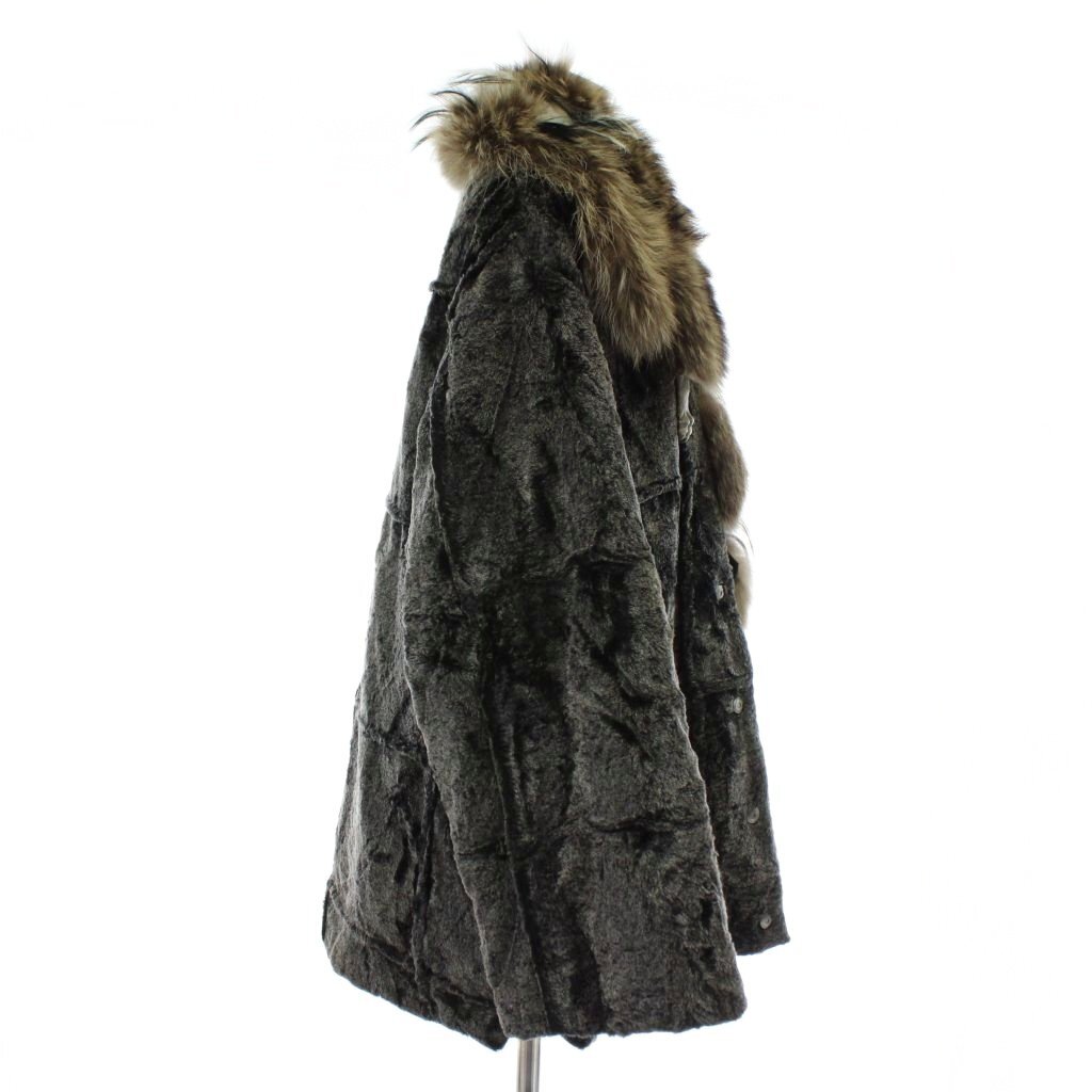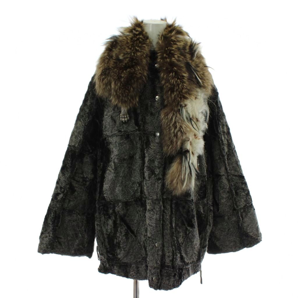 ジャンフランコフェレ GIANFRANCO FERRE ヴィンテージ ファーコート アウター うさぎ アライグマ 山羊革 ロング 襟付き 42 L 黒