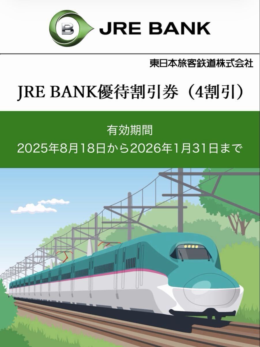 ・ご利用方法の詳細については、えきねっとウェブサイトの「株主/JRE BANK優待割引券をご利用の場合」をご確認ください。