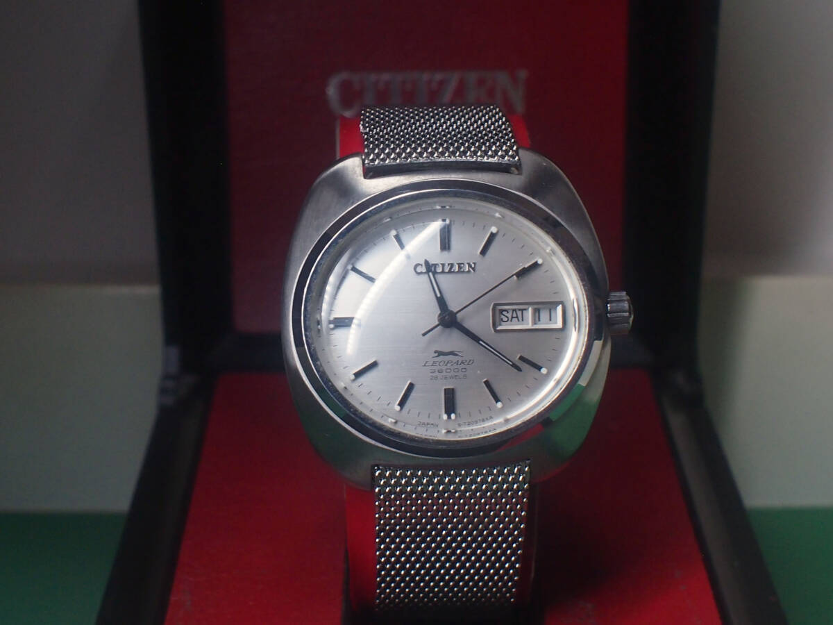 レオパールは、シチズン初の高振動系機械(ファーストビート)搭載機で、52系・6振動(セブンスターやクリスタルデート)の上級機として登場し、6振動・8振動・10振動と高振動化されて70年代の主流となっていきます。