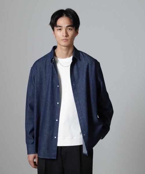 キーワード:シャツ メンズ デニム レギュラーカラー ロング丈 長袖 無地