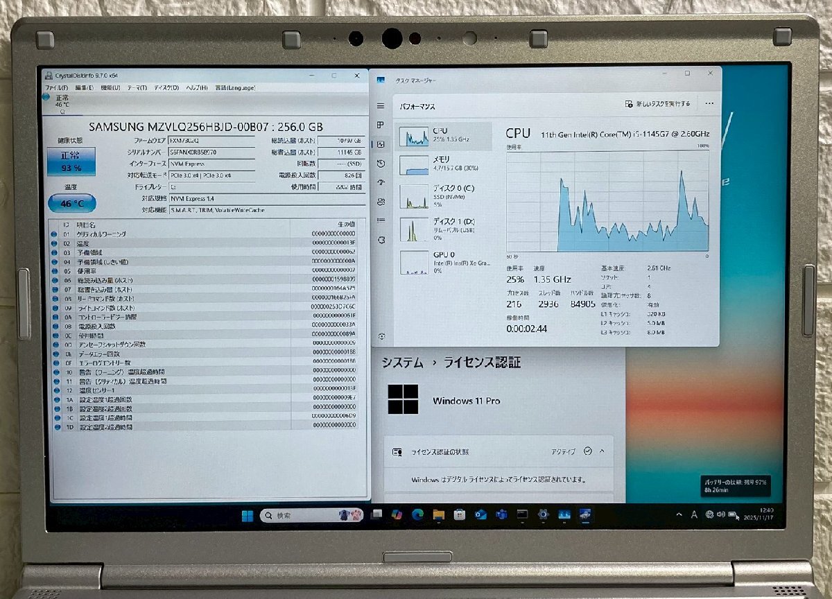 | ライセンス確認 | 〇 | CrystalDiskinfo | 〇 |