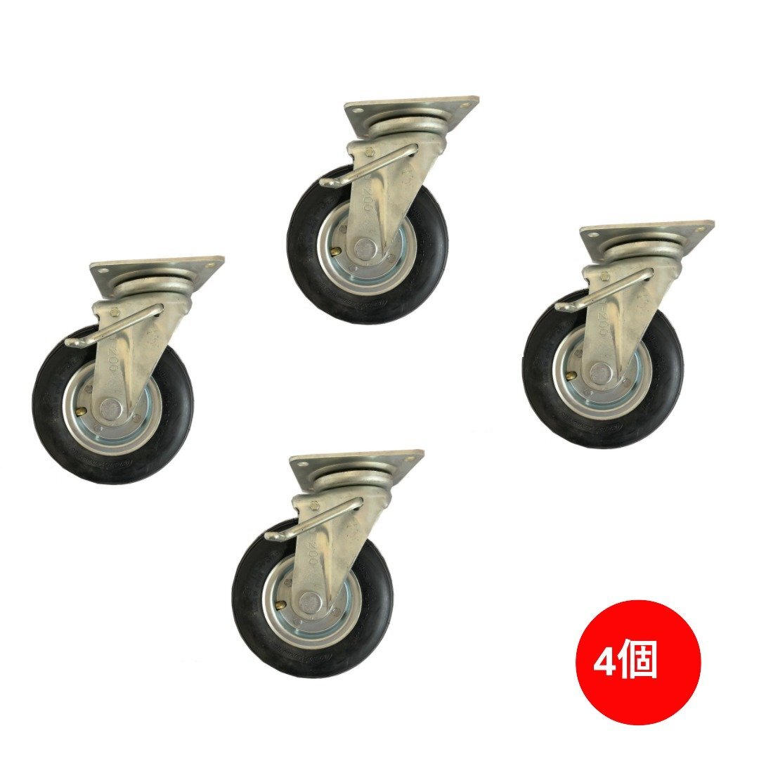 4個セット 81.6kg 岐阜産研・ウカイ製 空気入タイヤキャスター HLJB2.00-4BLACK 自在キャスター ストッパー付 台車用