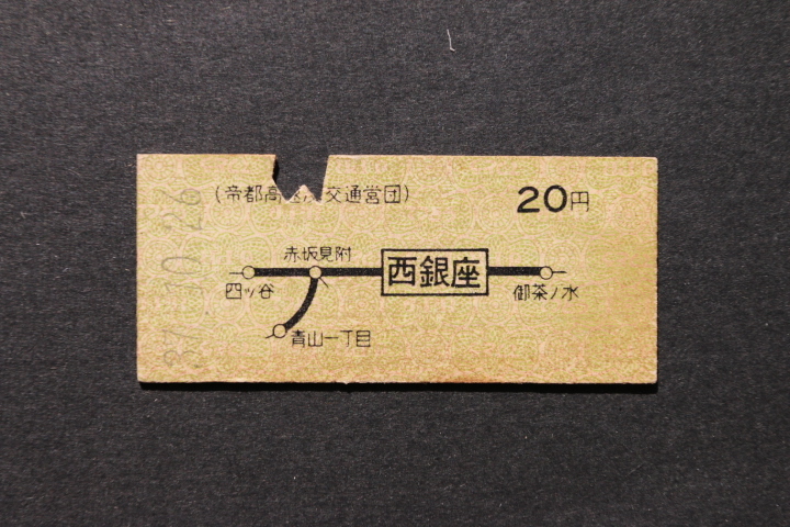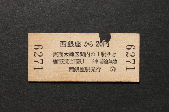 交通営団乗車券 西銀座 20円