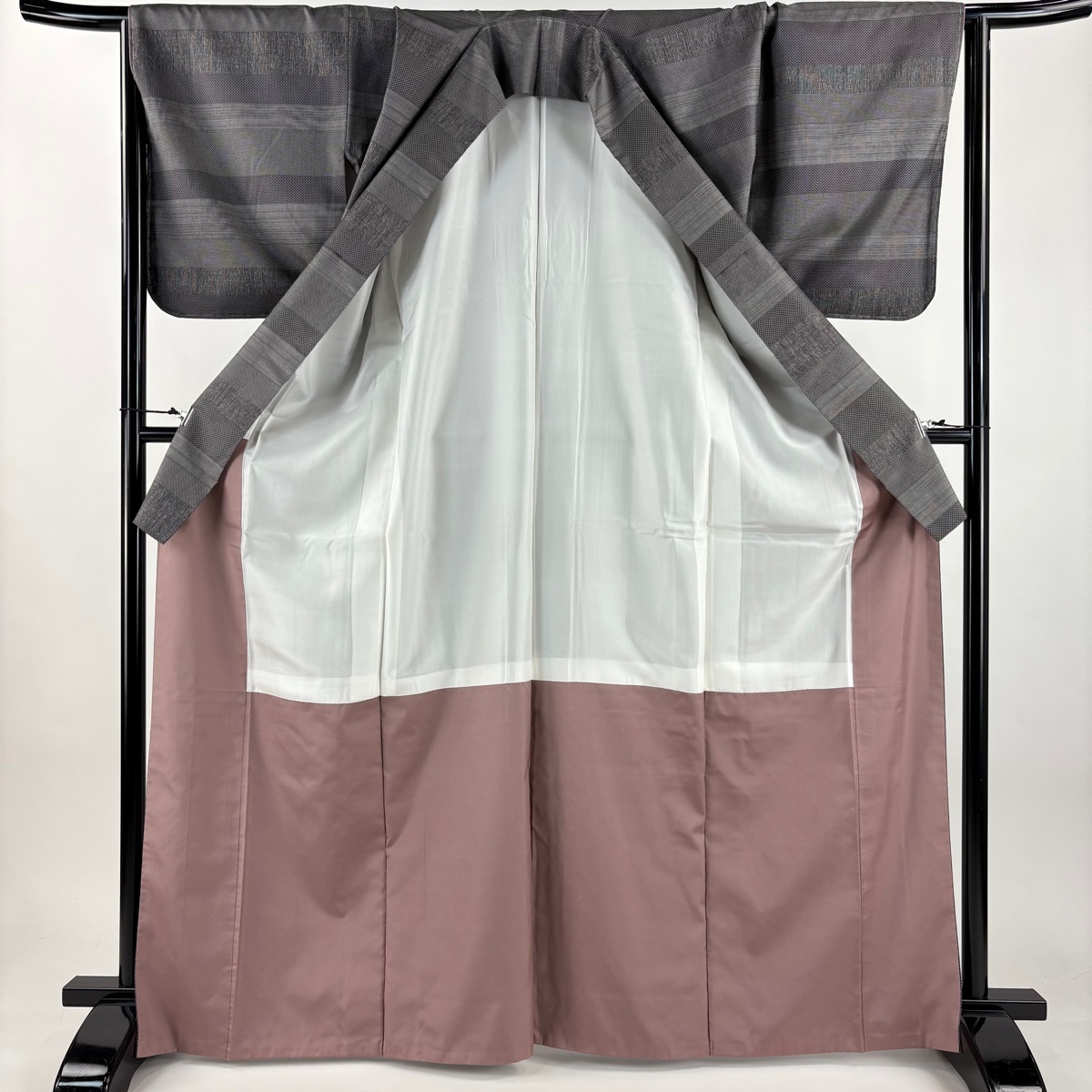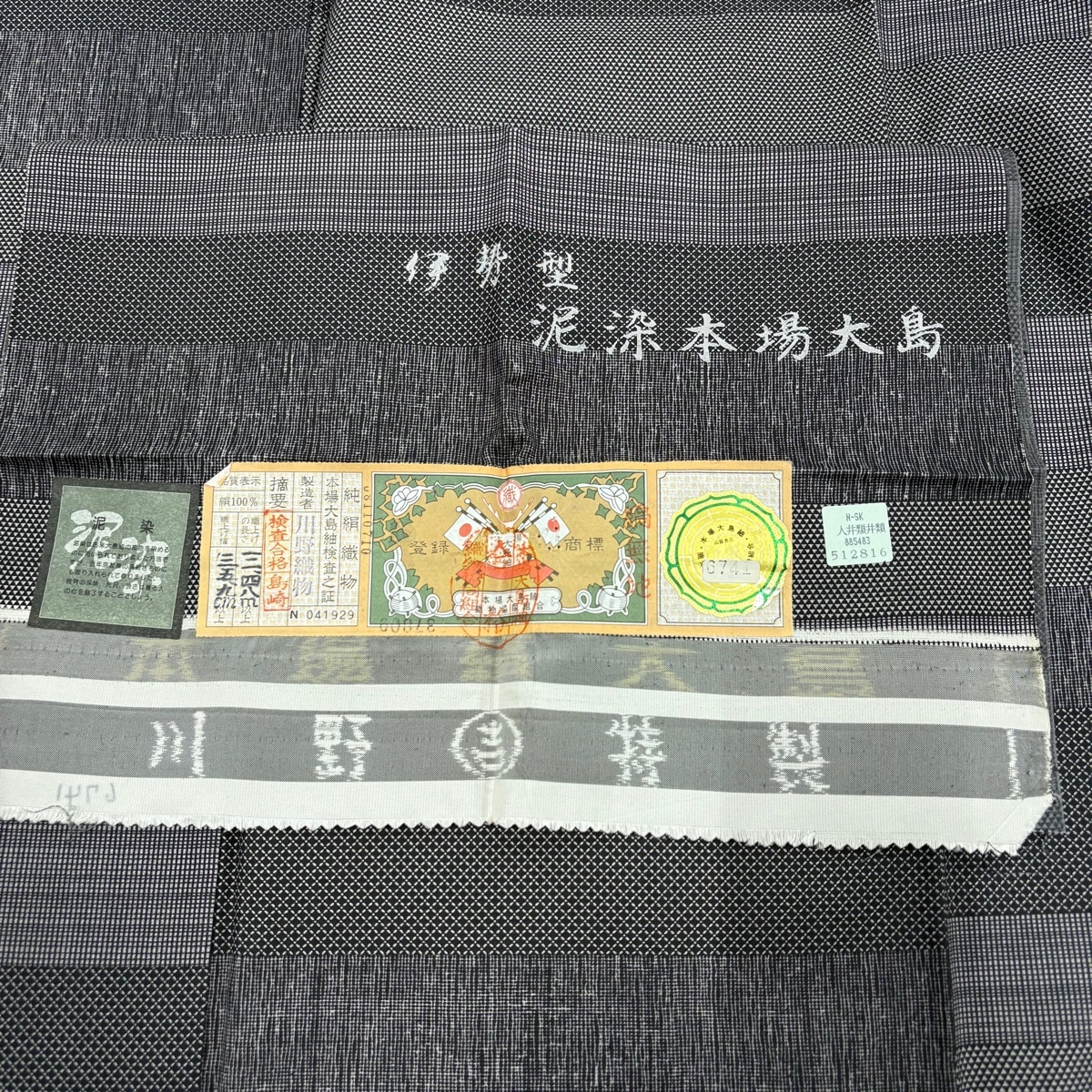 | 大島紬 美品 名品 段縞 幾何学模様 墨色 袷 身丈167.5 裄丈67 M 正絹 【中古】 |