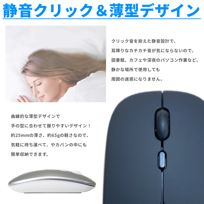 | 送料無料!!! 送料及び下記のご案内をご確認の上、ご入札お願い致します。 離島地域を除く九州、四国、本州まで送料無料。 ※北海道は+1000円、離島地域及び沖縄県は+3000円にて承ります。(発送前に加算) ※画像内にカラー及びサイズ等の選択が可能と記載がある場合がございますが、 お届けする物はタイトルまたは商品説明文に記載の物です。 ★※注文後のカラー変更や異なるカラー・サイズ指定等は一切承っておりません。 ※★※仕様(ロゴデザイン/ロゴ有無等も含む)は予告なく変更する場合があります。 ※多少の汚れや小傷がある場合がございますがご了承ください。 梱包は簡易包装ですので、箱の角落ち等はご了承願います。 【商品説明】 クリック音が静かで長時間のクリックでも疲れにくい設計の薄型マウスです。 ■モードDPI&充電 ・高速800DPI、1200DPIと1600DPIの間で速度を切り替えるDPIボタンは小さなボタンを採用。 ・1回充電満から、7-10日に使用して可能、 充電時間は2-4時間と短時間で充電しながらの作業ももちろん可能です。 ■デザイン ファッショナブルな薄型デザインで、表面上の弧が快適操作の秘訣です。 また、クリック音が静かで表面は滑り止め加工済で夏でも快適。 ■USB受信機 受信機はマウスの後ろに挿入されている.2.4 Ghz周波数技術を採用し 動作距離は約8mと安心の可動域。 家庭やオフィス、出先でも快適なPC作業をサポートします。 ============================= 【商品仕様】 ■カラー:スモーキーブラック ■サイズ:約112*57*20mm ■重量:約54g(本体) ■充電方法:USBケーブル ■伝送方式:2.4G無線伝送 ■DPI精度:800/1200/1600DPI ■有効範囲:約8m ■セット内容:ワイヤレスマウス×1,受信機×1,USB充電ケーブル×1 ============================= ![]() ![]() ![]() ![]() |