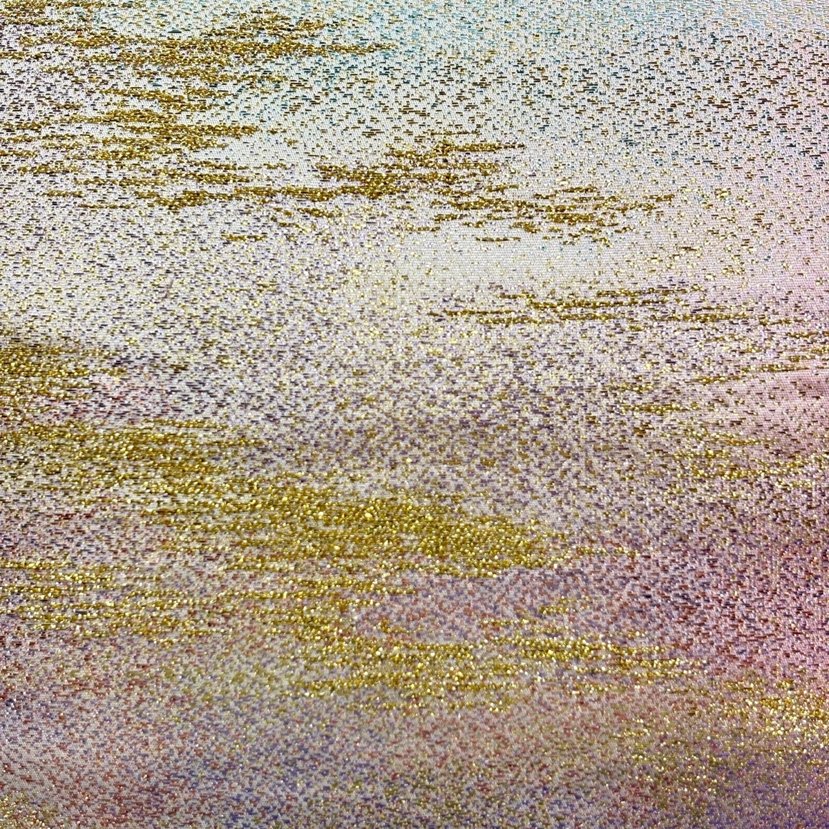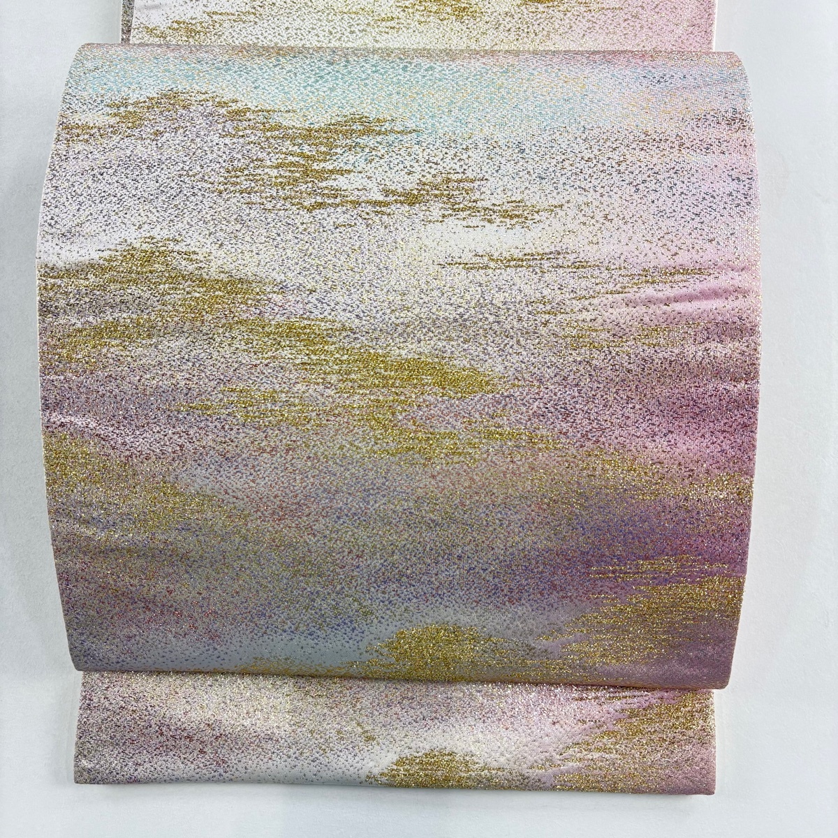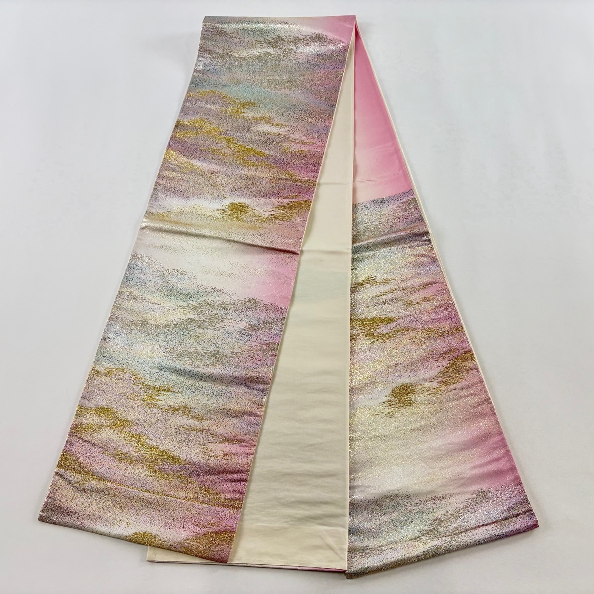 | 袋帯 秀品 霞 箔 薄ピンク 六通 正絹 【中古】 |