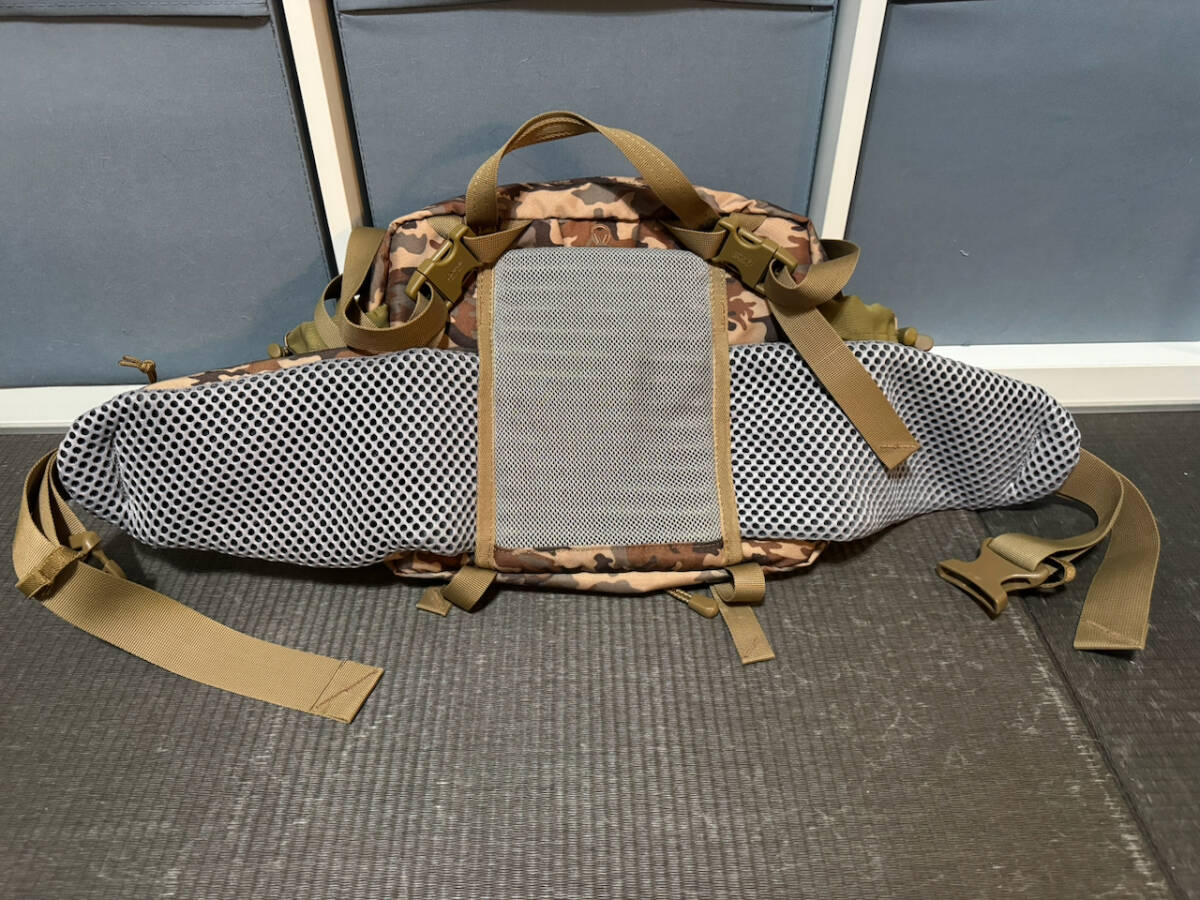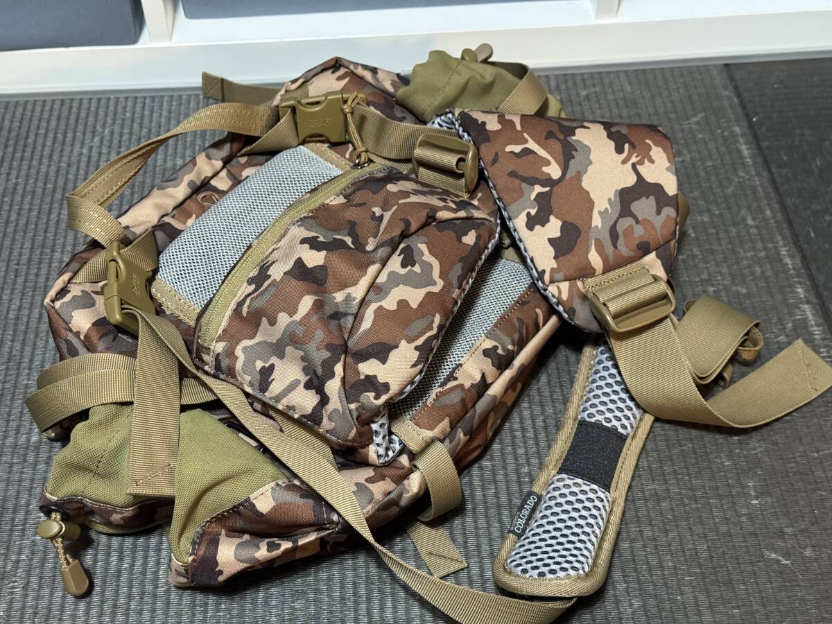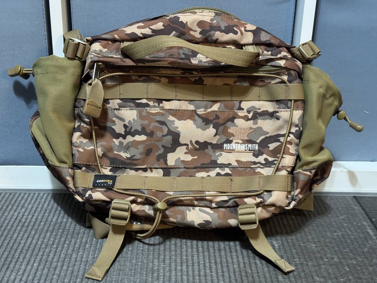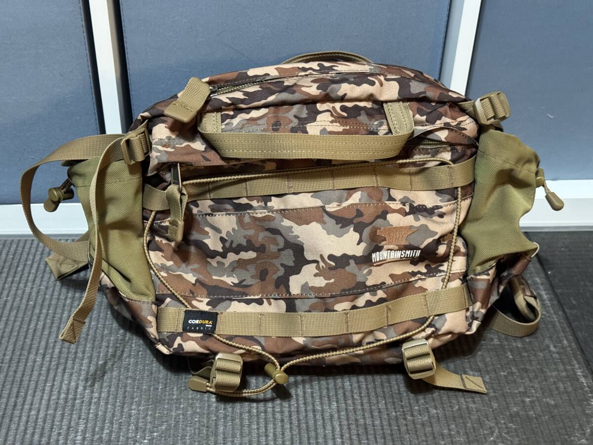 マウンテンスミス ツアー 迷彩柄 ヒップバッグです。 日本の代理店が事実上撤退し、なかなか手に入らない、またこのデザインは廃盤となっており、現行モデルよりもよりアウトドア・ミリタリー感のあるデザインになっております。
