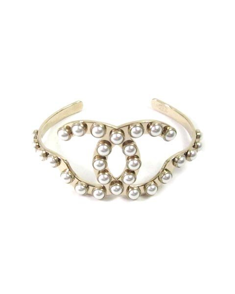 | シャネルらしいCCデザインのバングル。パールがついた華やかで存在感があります。普段使いから華やかなお席までお使い頂けます。上品で大人コーディネートアクセとしておすすめです。 |