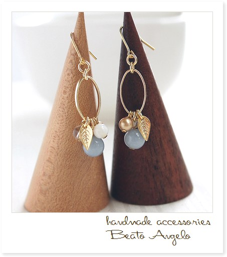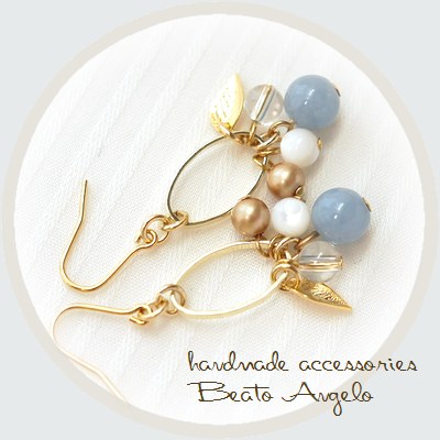 ■+angelo+天然石エンジェライトとクリスタルのオーバルピアス(p-050)G ov001 水晶 マザーオブパール サックスブルー