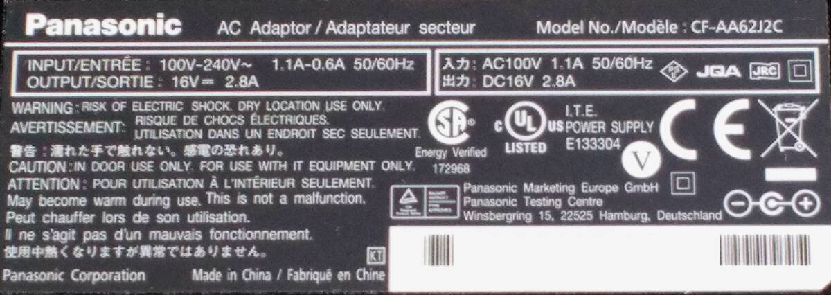 ② 型番:ACアダプター Panasonic CF-AA62J2C M1