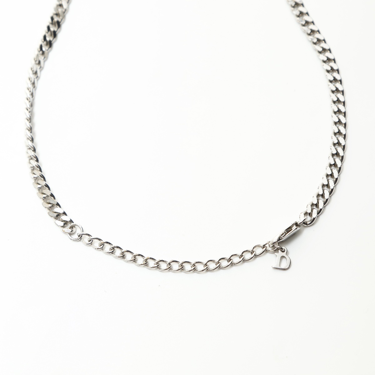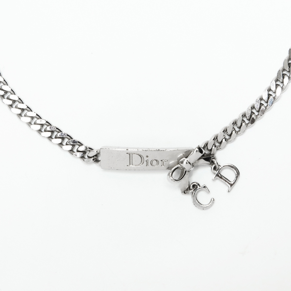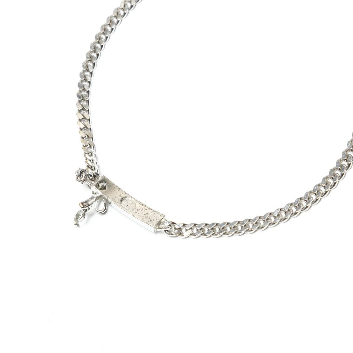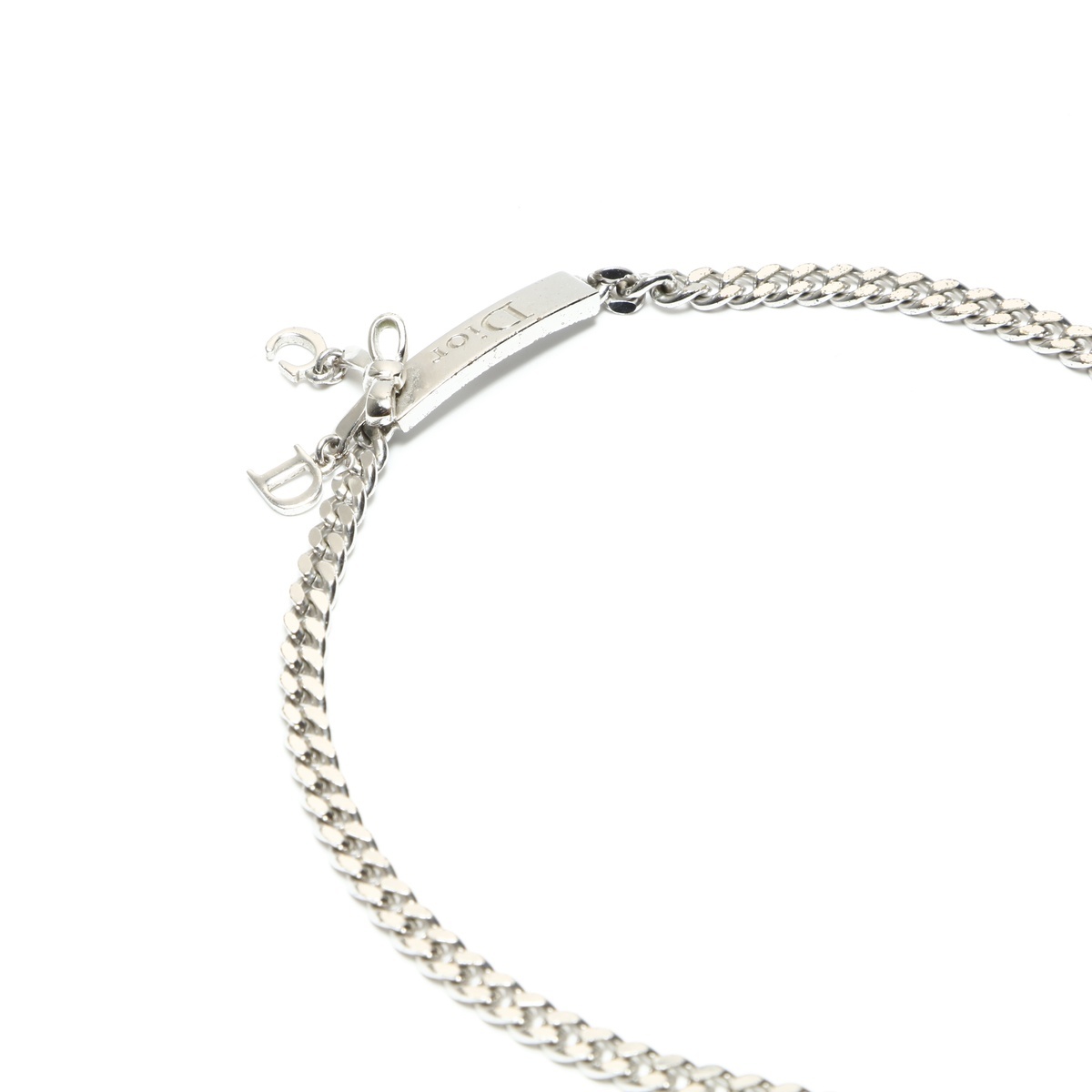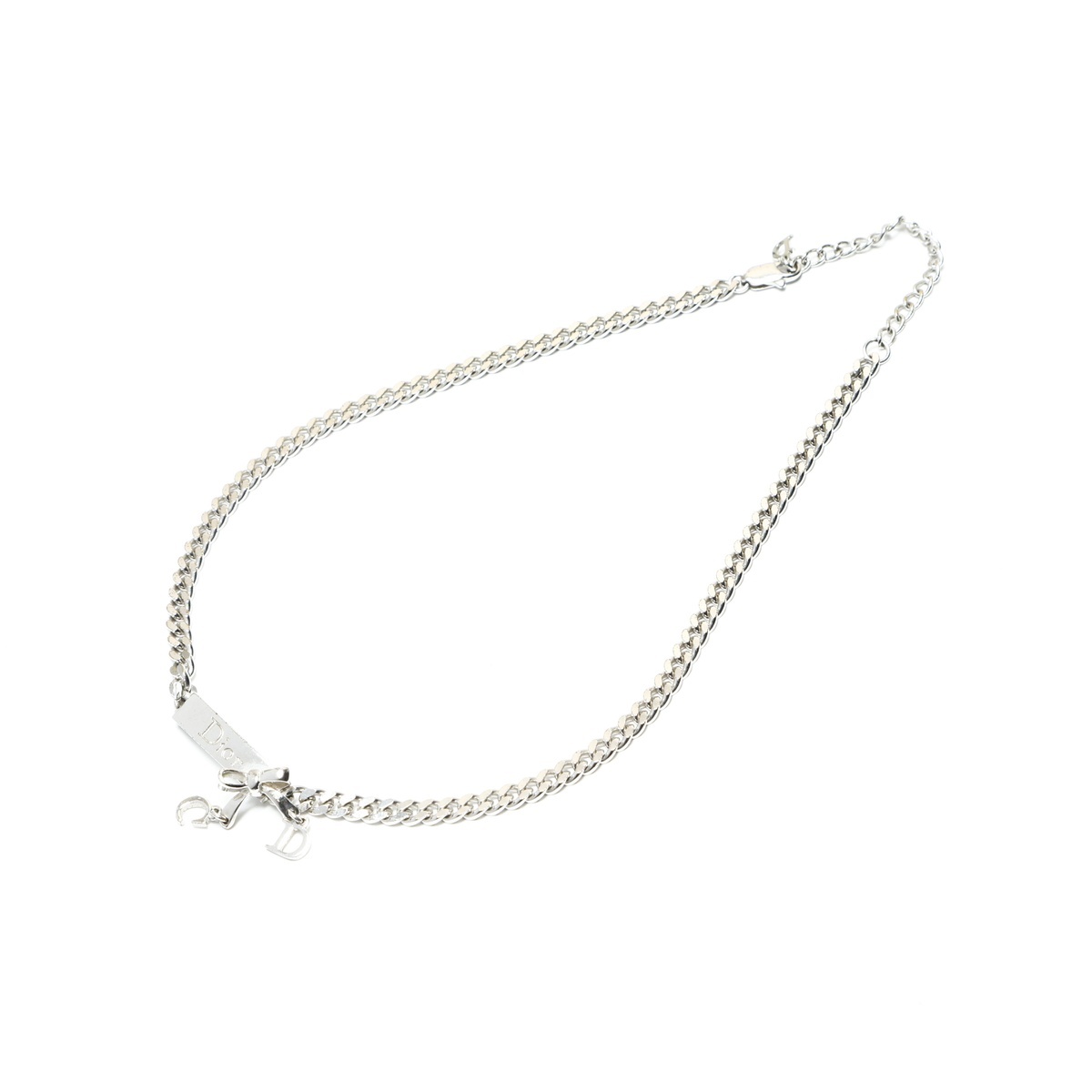 極美品 Christian Dior ロゴ プレート リボン ネックレス シルバー