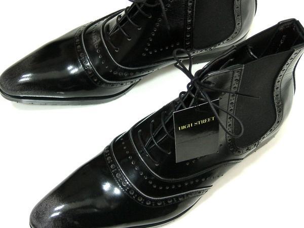 ハイストリート ブーツ S レザー 本革 サイドゴア 黒 新品
