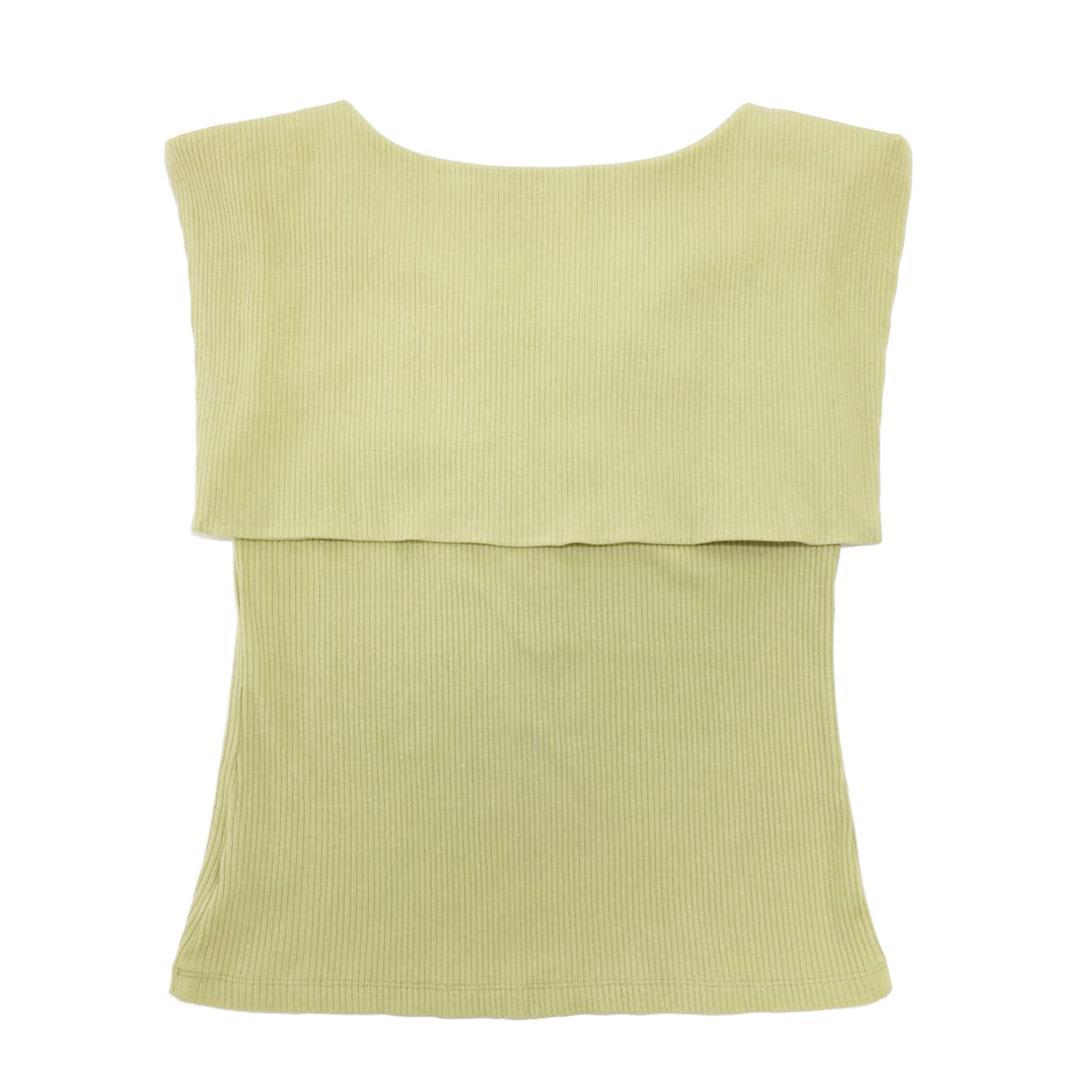 存在感のあるカラーデザインをフロントギャザーを入れることでフェミニンな印象に落とし込んだカットトップス。