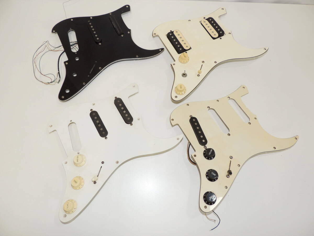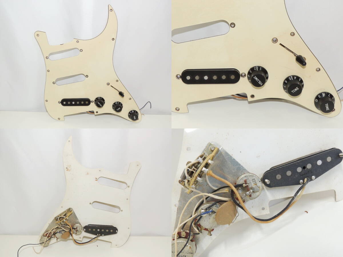 長年趣味としてギター収集・演奏をされていた方のお部屋を片付けて譲り受けたパーツです。 元オーナーがヘビースモーカーだった為、タバコ臭が染みついており、非喫煙者の自分には部屋に置いておくだけで辛いほどのニオイがします。 詳しい知識が無いので細かく状態を文章でお伝えすることが困難です。 題名や商品説明にも誤りが多くあるかもしれませんので、全て現物(画像)優先とさせていただきます。 できるだけ画像でお伝えできるように努力してはいますが、至らぬ点も多いかと思いますので、ご不明な点に関しては、ド素人でも確認できるように質問していただけますと非常に助かります。 以上の理由(難あり理由)により、何か不備等があっても対応できませんので、当該出品に関しては全てジャンク品とさせていただき、ノークレーム厳守でお願い致します。 画像をよく確認していただき、識者の方が納得の上での入札をお願いできますと幸甚です。 (画像は実物より綺麗に見えますので過度な期待はなさらぬようお願い致します) ■全て動作未確認です。 ■ピックアップ等がついたままのピックガードが4点、オマケのピックガード5点、合計9点セットです。 ■外観、経年劣化や使用にともなう傷みや汚れがございます。 (欠品部品も含め画像にてご確認下さい) ■画像のものが出品物の全てです。 (背景内のものや計測器は含まれません) ■1円スタートです.....宜しくお願い致します。 ■入札された時点で下記注意事項を全てご確認及びご同意いただいたと判断します | ||||