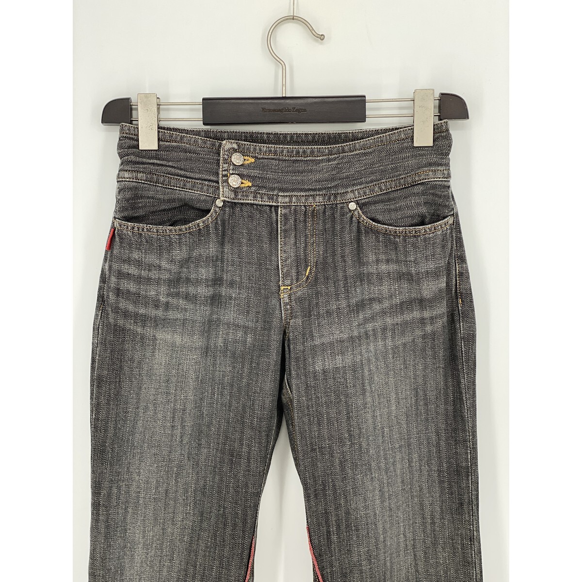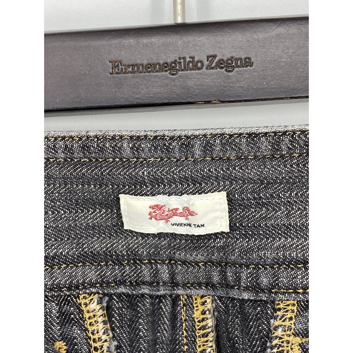 B0903/美品 VIVIENNE TAM ヴィヴィアンタム コットン 切りっぱなし ストレート ワーク ワイド デニムパンツ 1 灰色 インディゴ レディース
