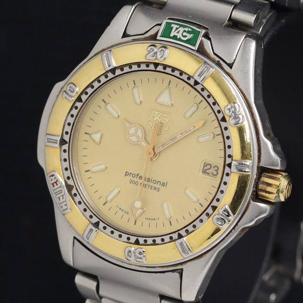 1円 稼働 タグホイヤー プロフェッショナル WF1221-K0 QZ ゴールド文字盤 デイト メンズ腕時計 KRH 0043100 APY