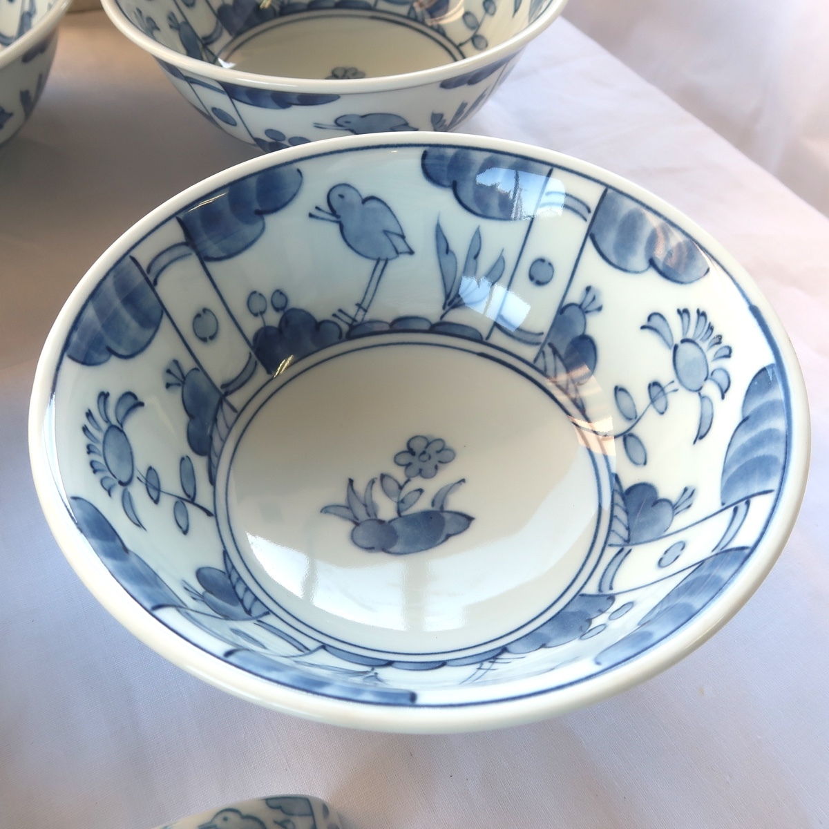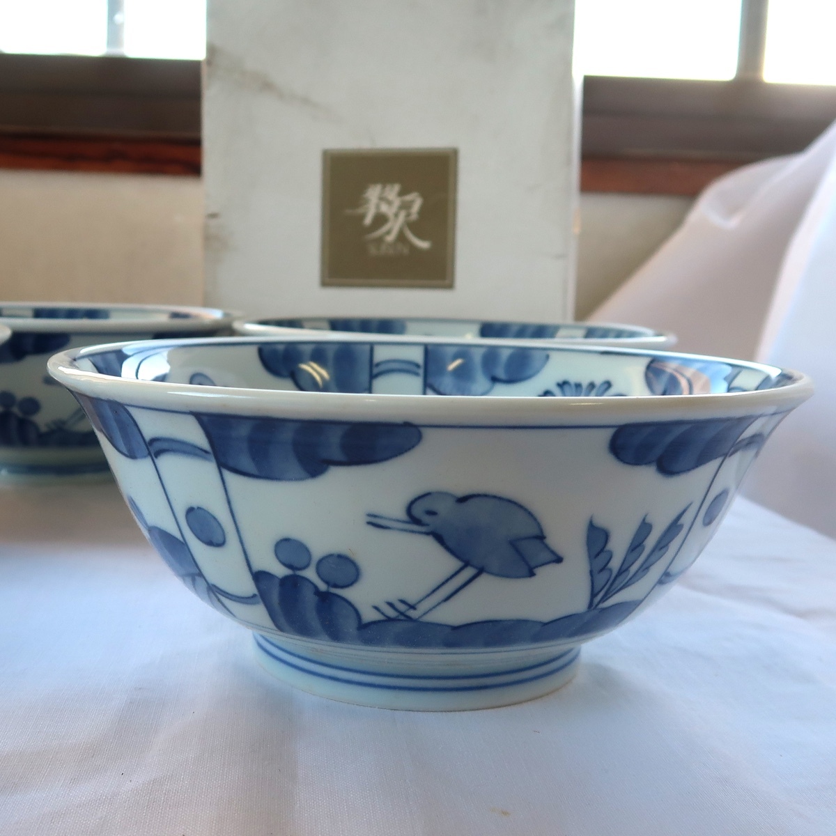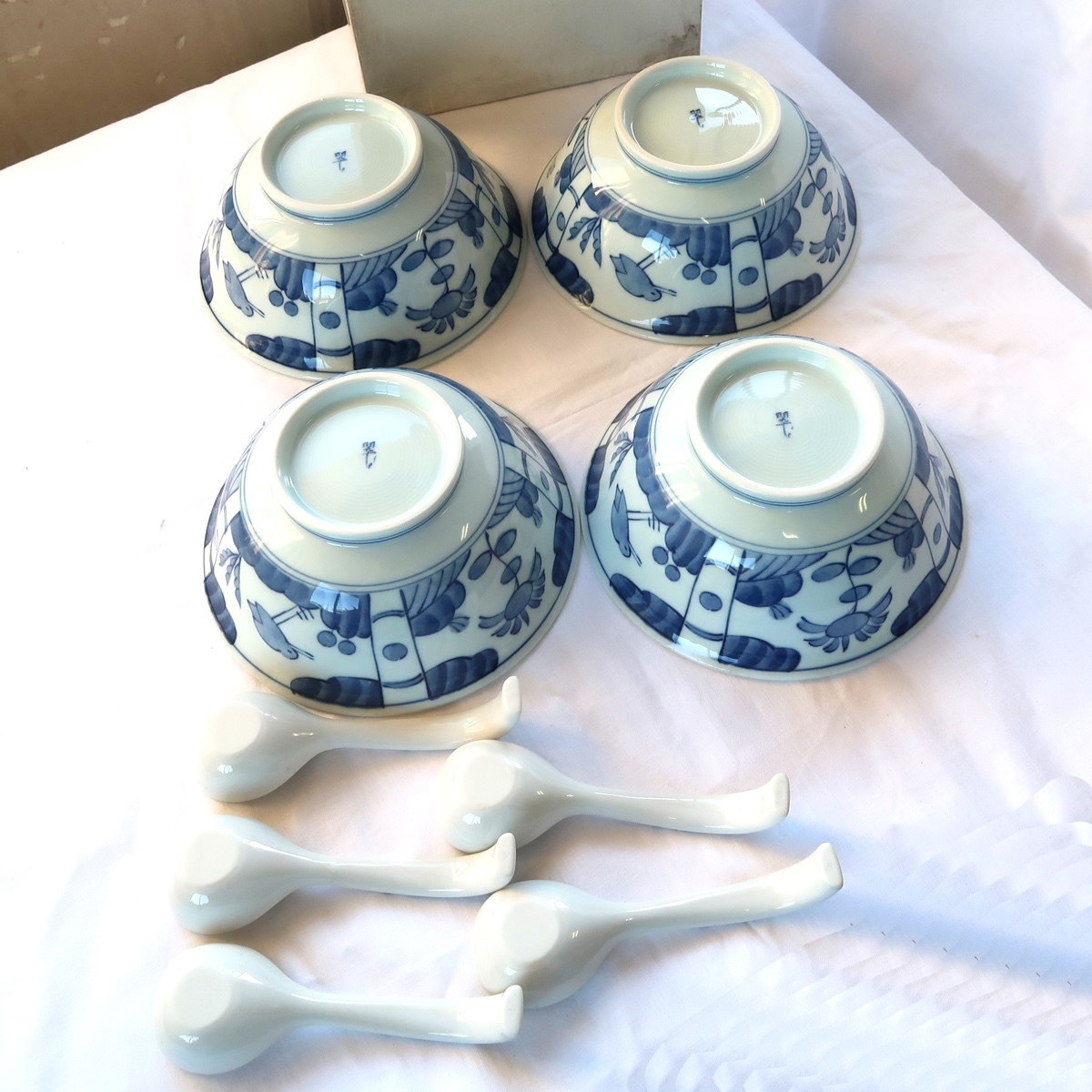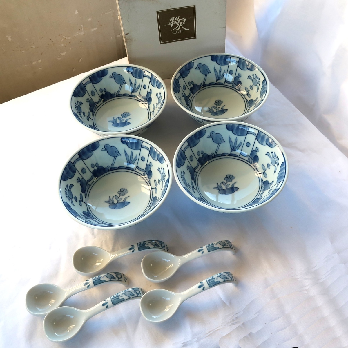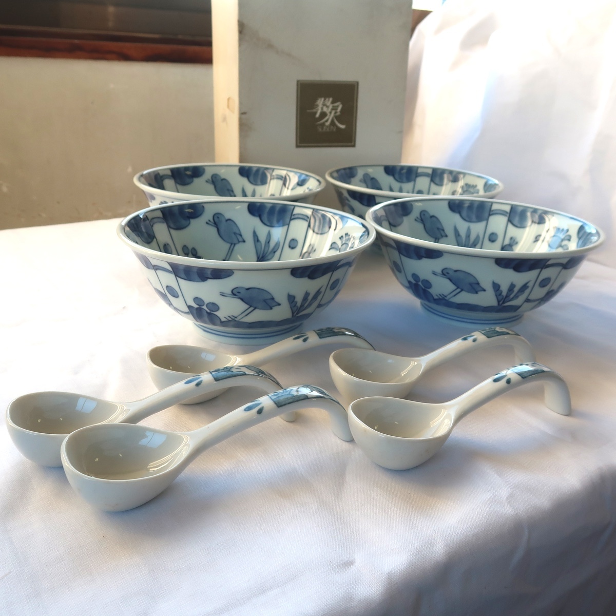 翠泉 古代花鳥文 麺鉢 鉢 丼鉢 4客 蓮華 5客 未使用 長期保管品です。