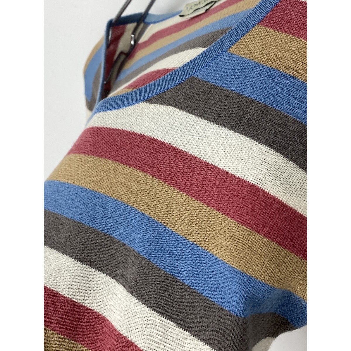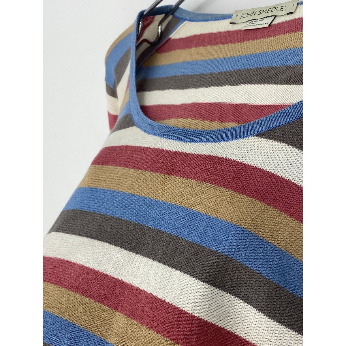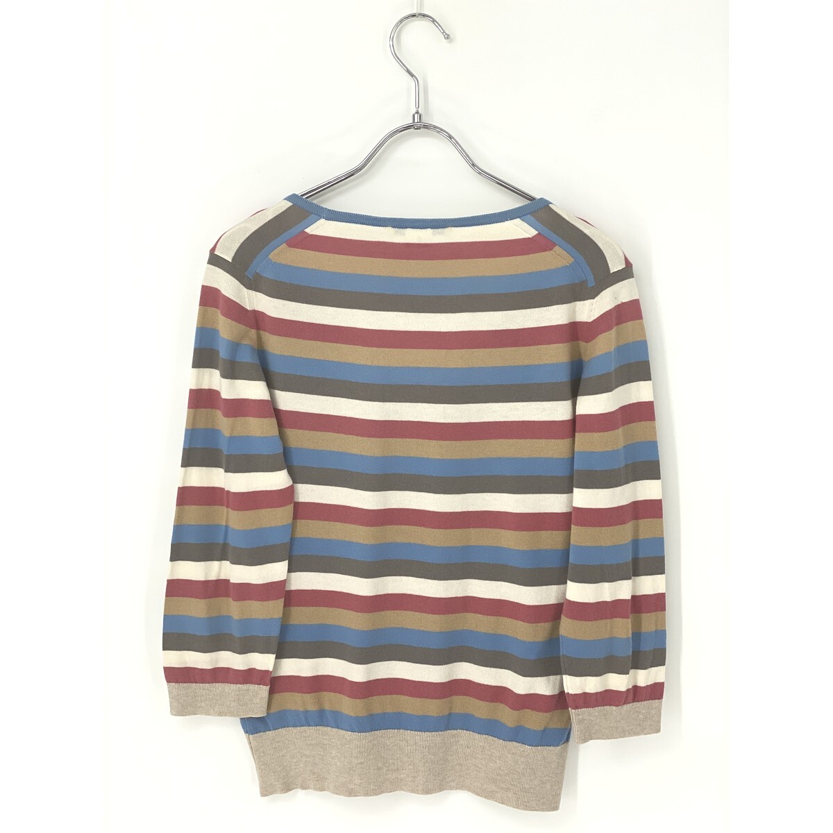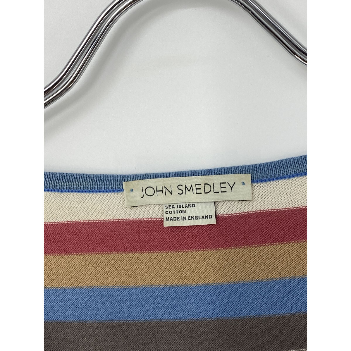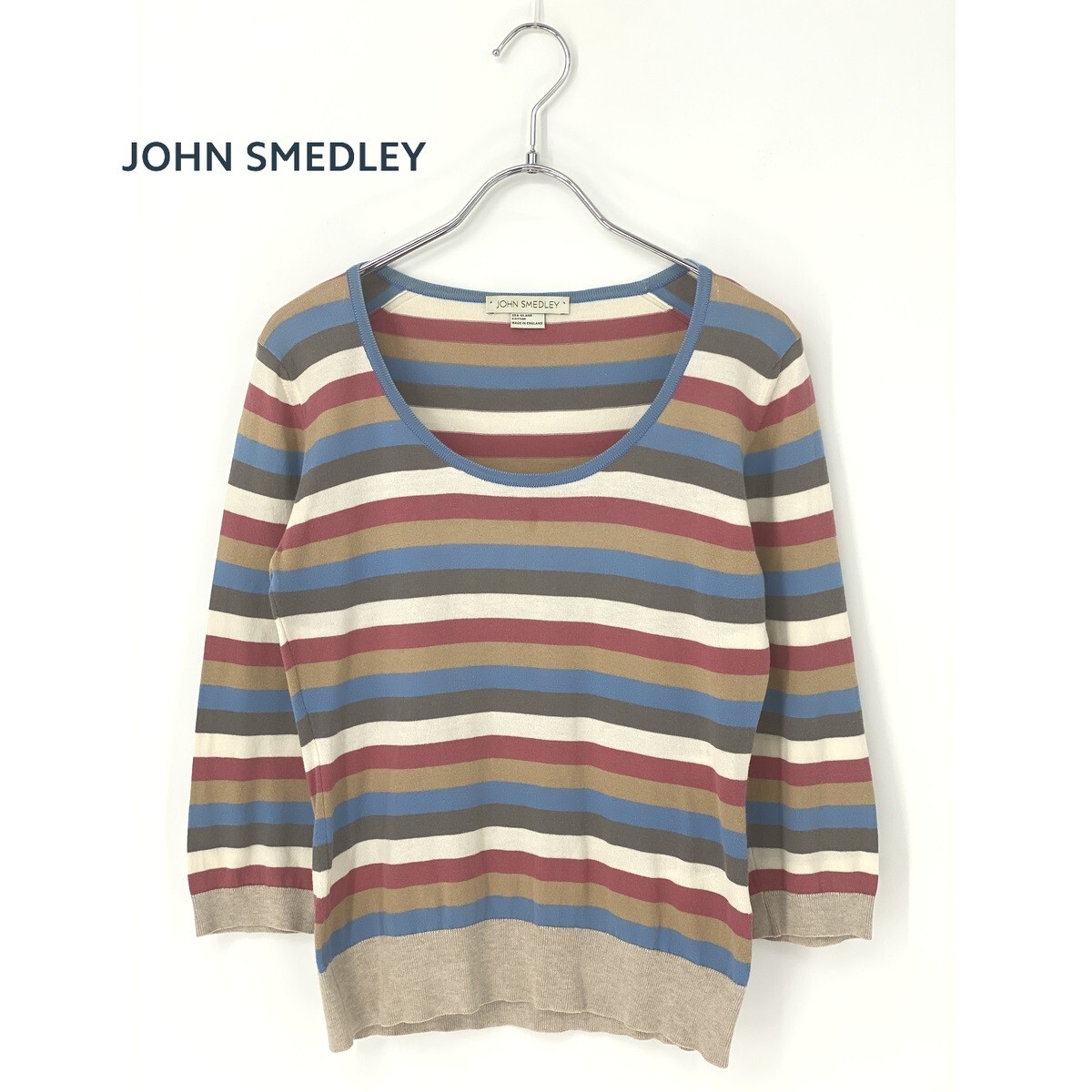 A9301/春夏 JOHN SMEDLEY ジョンスメドレー コットン ボーダー クルーネック ニット リブ セーター S マルチカラー 英国製 レディース