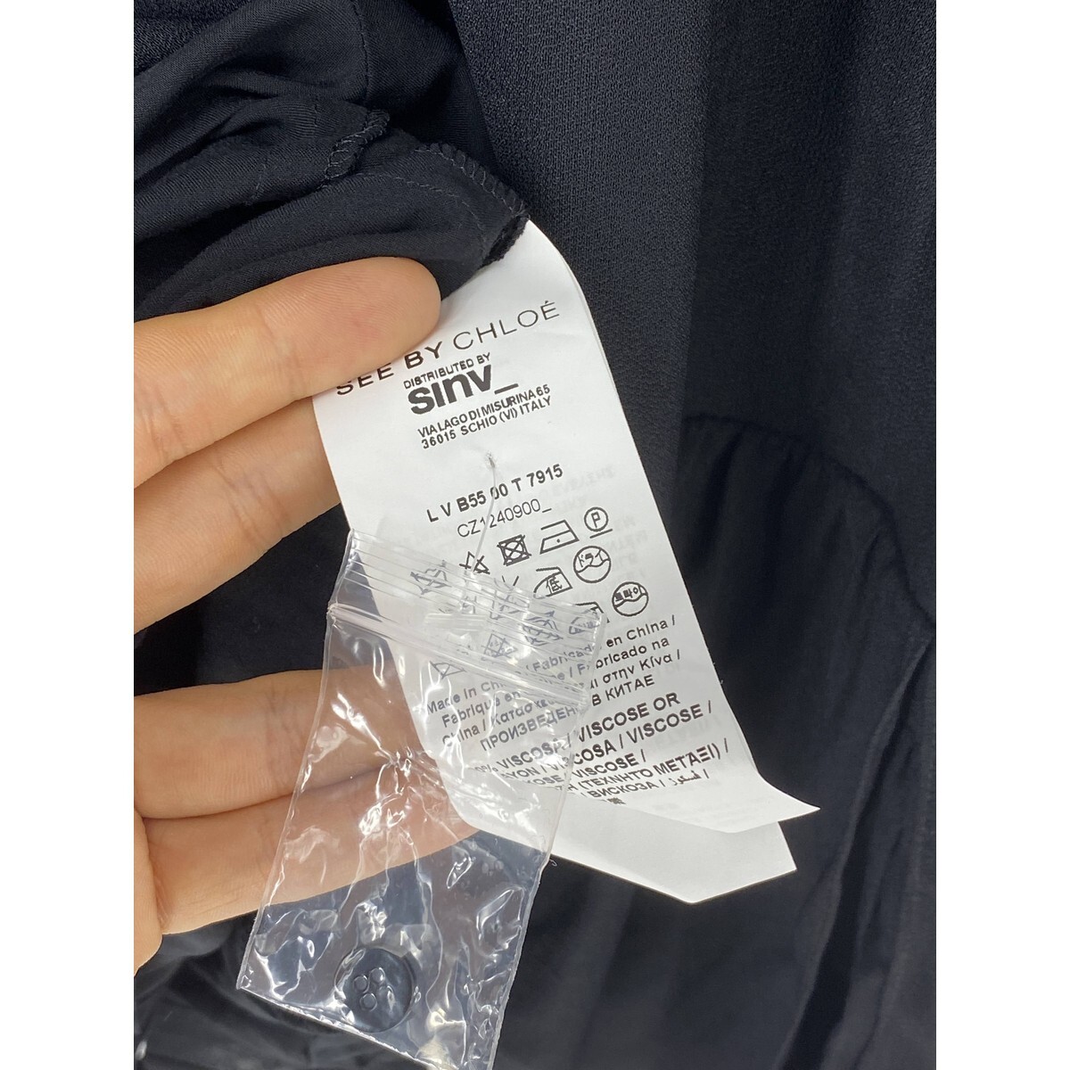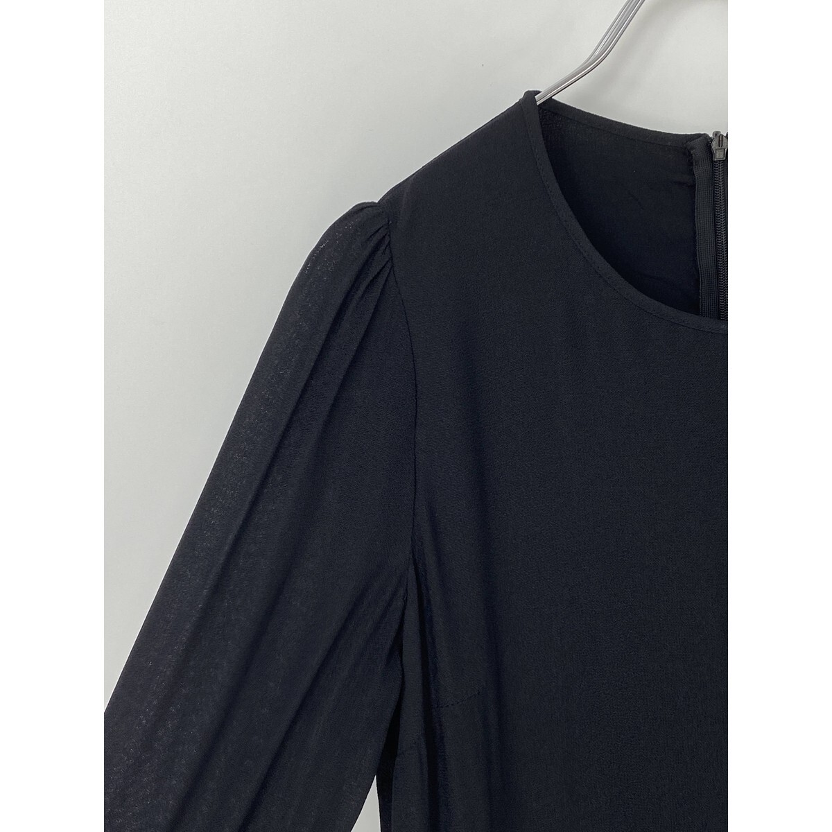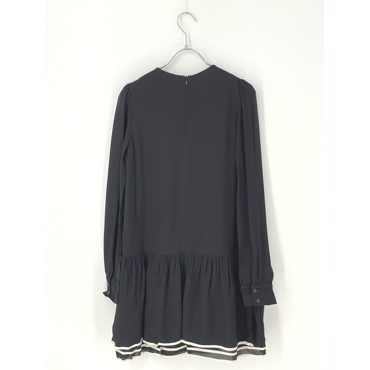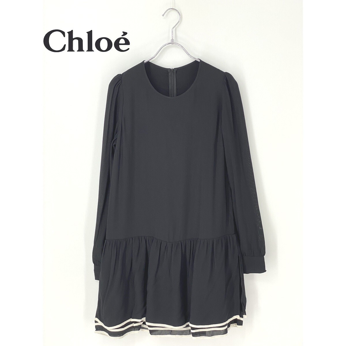 A7910/極美品 春夏 SEE BY CHLOE シーバイクロエ レーヨン 丸首 長袖 ギャザー フリル ドレス 膝丈 ワンピース M程 黒/レディース スカート
