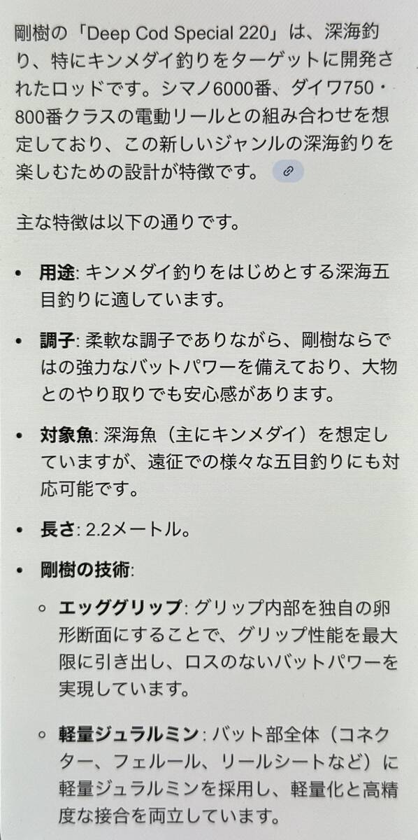 船釣り用、深海ロッド 剛樹 Deep Cod Special 220  中古品です。