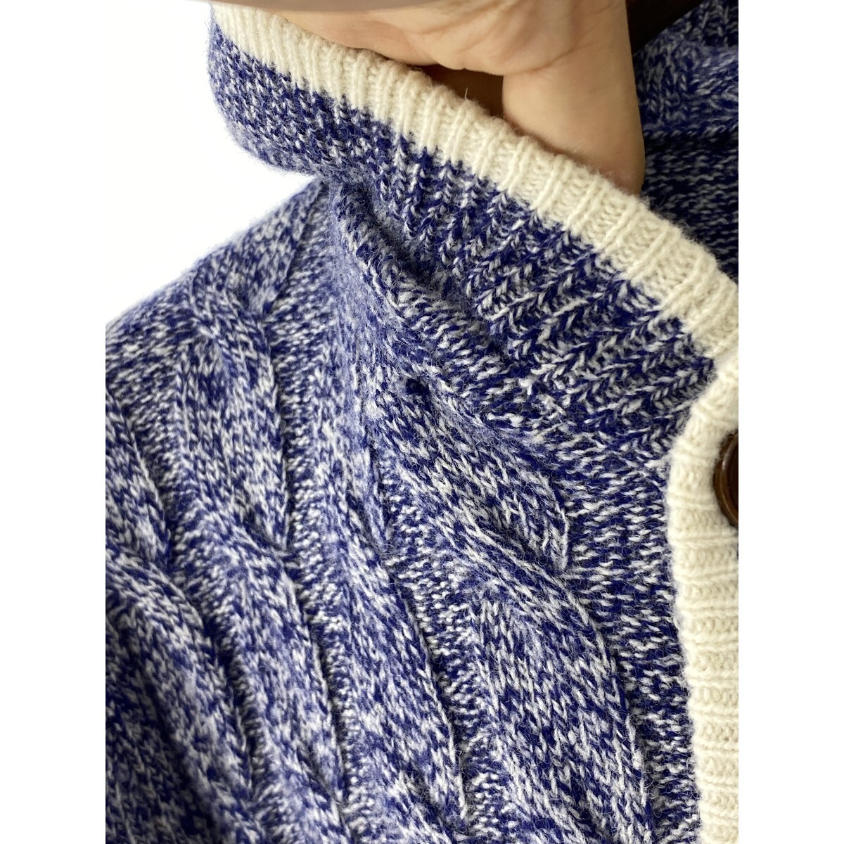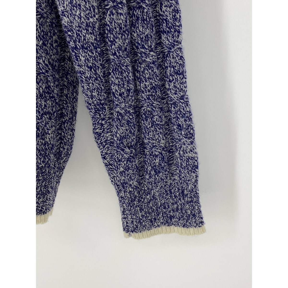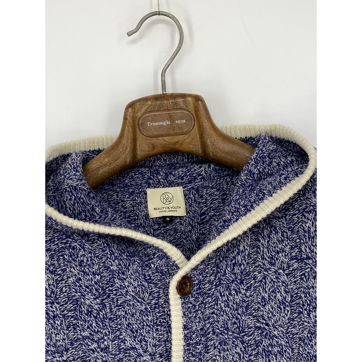 B0776/極美品 UNITED ARROWS ユナイテッドアローズ ウール ケーブル編み 霜降り フード パーカー ニット リブ カーディガン S 青 メンズ