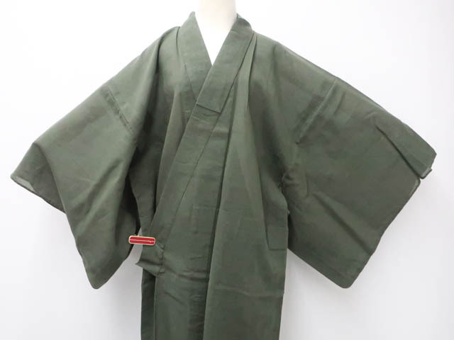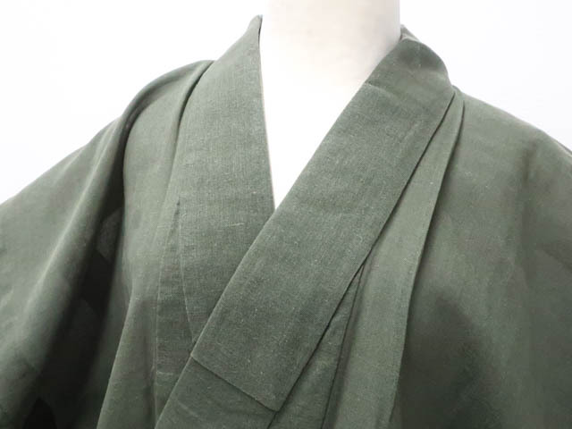 リサイクル商品のため、全体・衿折れ山にスレがございますがご着用いただけると存じます。 地色は深緑です。 1枚目の画像が近いお色かと思われます。 素材は正絹です。 |