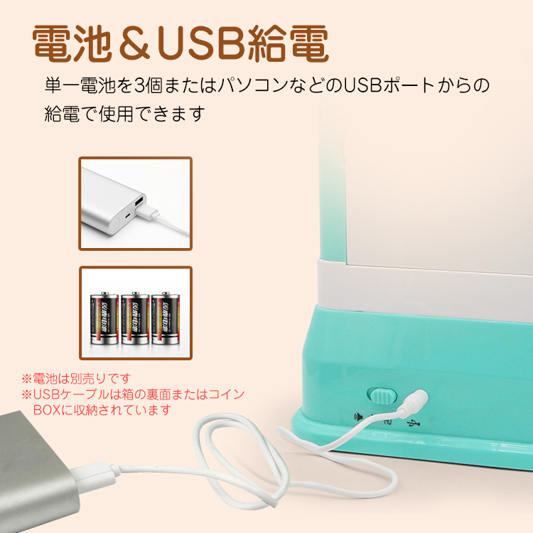 ■単一電池を3個またはパソコンなどのUSBポートからの給電で使用できます