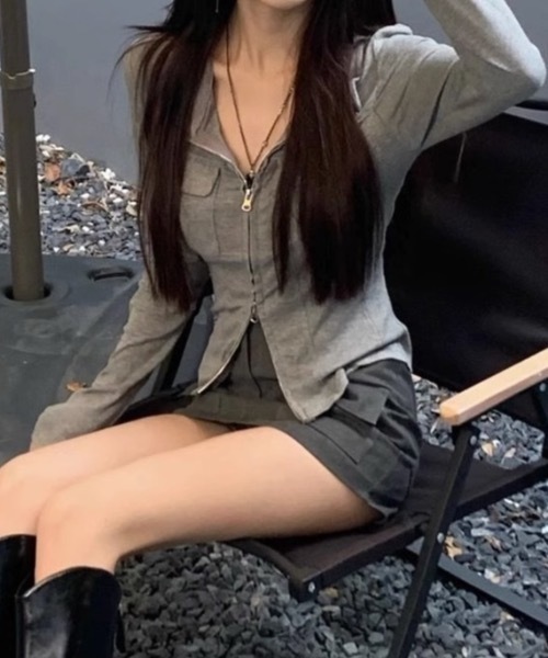 参考商品名:ダブルジップポケットカットカーディガン