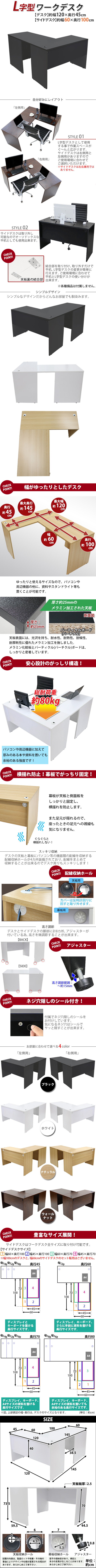 | 商品紹介 | ■作業スペースを広く確保出来る、L字型ワークデスクです。 ■サイドデスクの幅が約60cmのタイプです。 ■会議室や事務所等、オフィス家具として様々なシーンでお使いいただけます。 ■天板には、メラミン加工を施しています。 ■幕板が天板と側面板をがっちりと固定!横揺れを防止します。 ■ネジ穴隠しのシール付き。 ■デスクの天板と幕板に配線収納ホールが2カ所ずつ備わっています。 ■アジャスターで高さの調節が可能です。(高さ調節範囲〜約15mm) ※こちらの商品は、組立て式です。組立てにはプラスドライバーが必要です。お客様でご用意ください。 ※組立図が付属します。 ※サイドデスクの取り付けはデスクの右側専用となります。 ■材質:パーティクル(パーチクル)ボード(メラミン加工)(本体、サイドデスク)、プラスチック(アジャスター、配線収納ホール) ■重量:約44kg(デスク:約23kg、サイドデスク:約21kg) ■総耐荷重:約80kg ●新品商品ではありますが、輸入商品の為、多少の擦り傷などがある場合がございますので、ご納得の上ご購入下さいませ。 ●ご購入後、お客様ご都合によるご返品、ご返金等は一切お受け致しておりません。 ●本商品を使用した際に発生したトラブル、事故につきまして、当社は一切の責任を負いません。ご使用に関しましては、全て自己責任にてお願い致します。 ※カラーはブラックとなります。 |