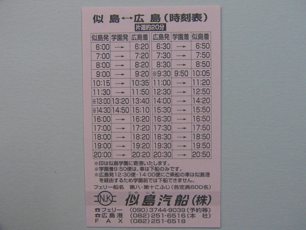 658.似島汽船 乗船券 似島-広島 時刻表付