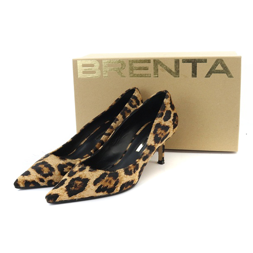 ブレンタ BRENTA 22AW レオパード パンプス ピンヒール ポインテッドトゥ レオパード柄 ヒョウ柄 39.5 26.5cm 茶色 ブラウン /SR6 レディース