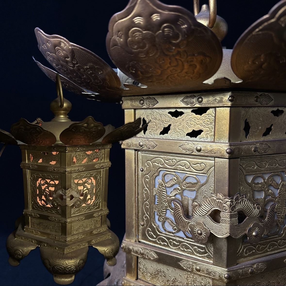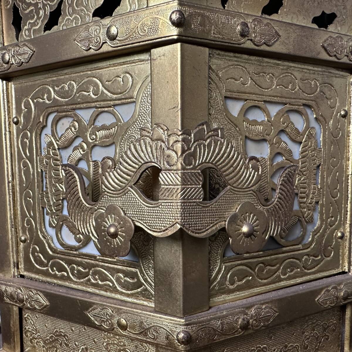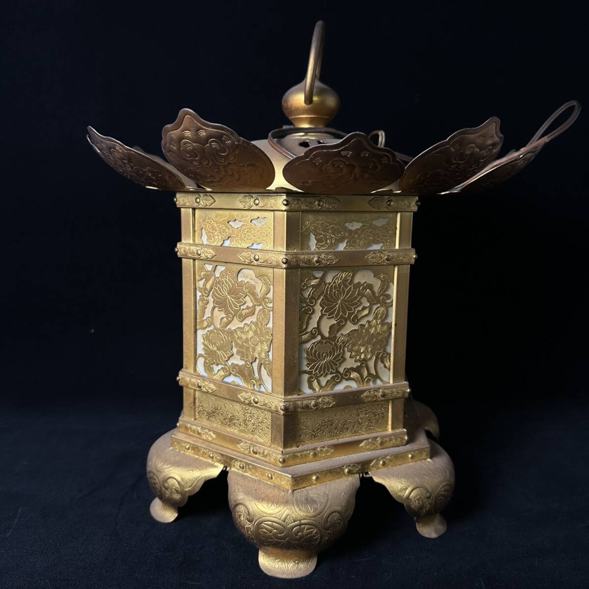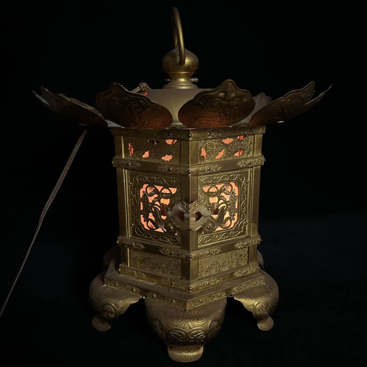コレクター買取品 仏教美術 六角 透かし吊灯籠 釣灯籠 燈篭 仏具 仏壇 神具 金属工芸 飾物 置物 時代物 動作確認済 ①