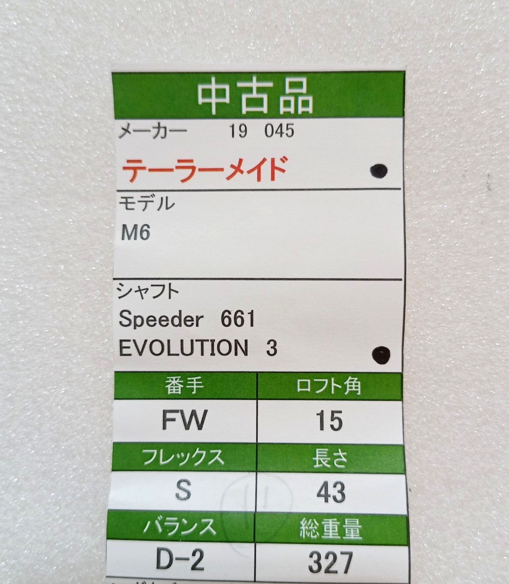 【即決価格】【FW】 テーラーメイド/ M6/15度/リシャフト・SPD661エボ3/FLEX S/カバー無し