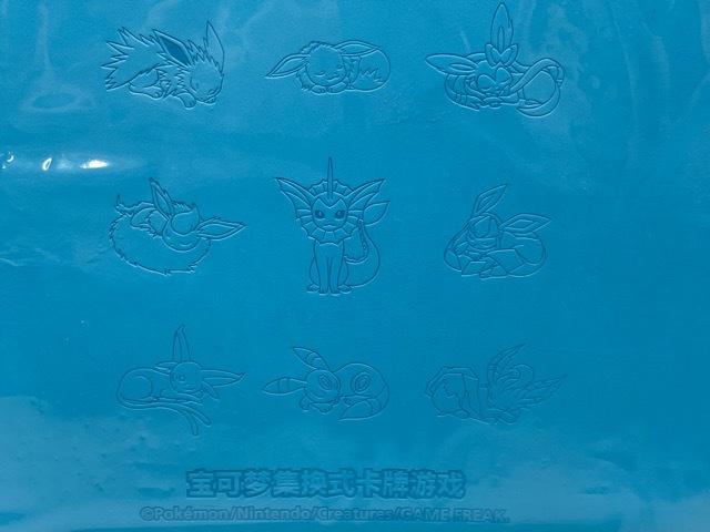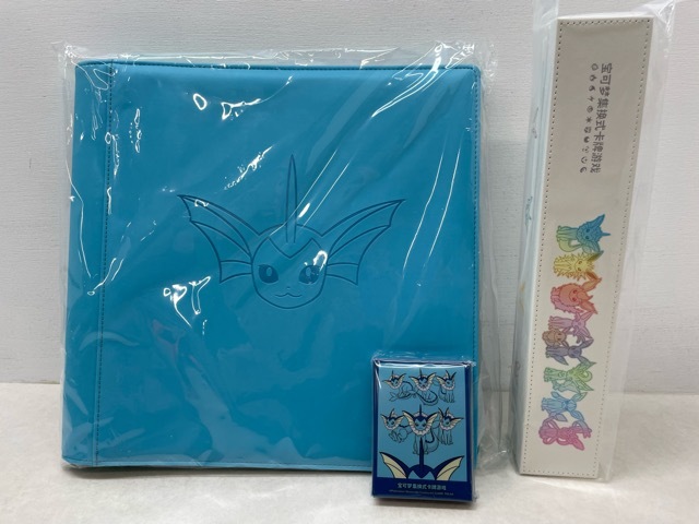 ・中国限定 イーブイ ギフトBOX 【シャワーズ】の中のカードファイル、プレイマットケース、スリーブの3点セットです。