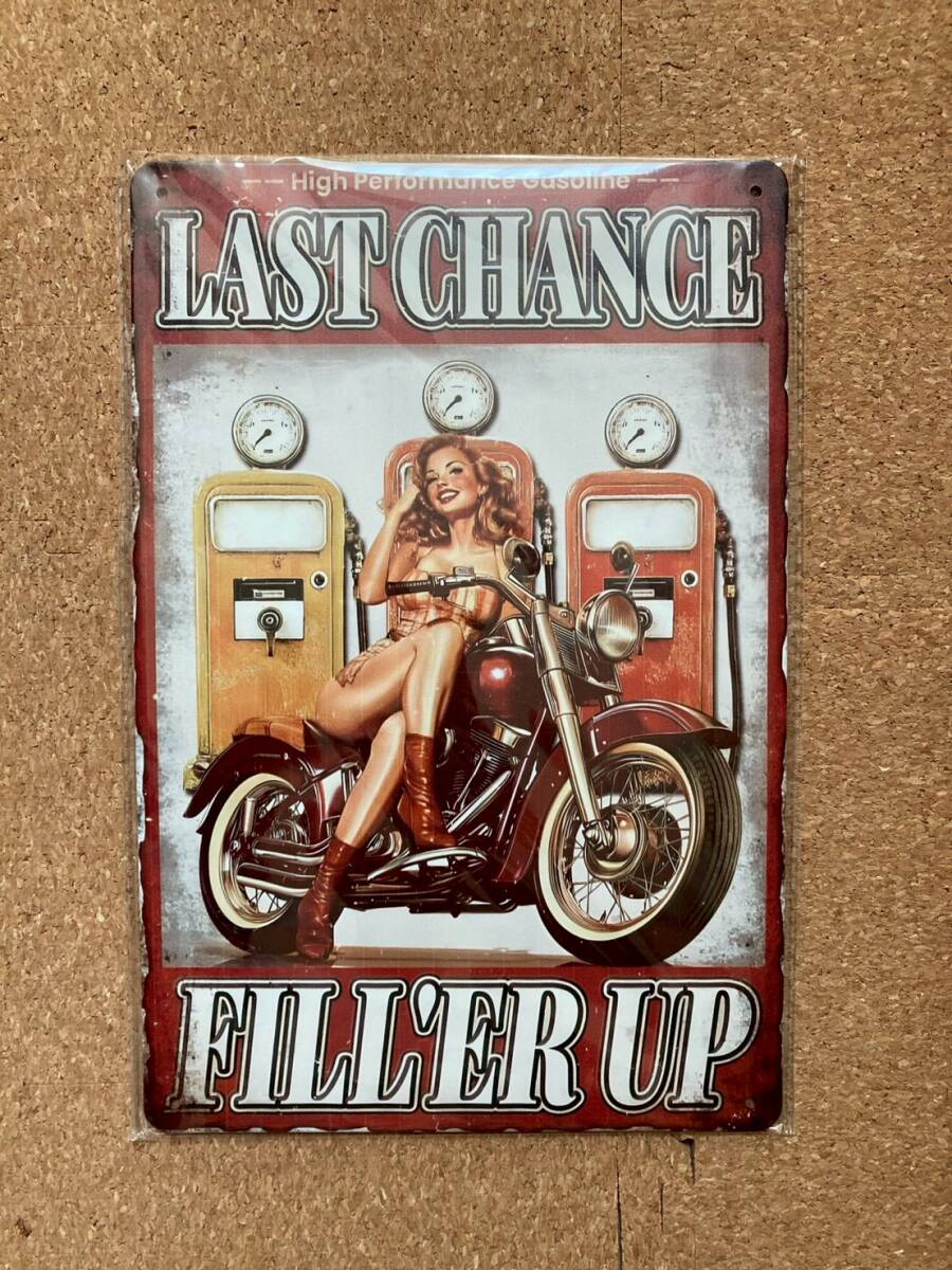バイクガレージ サインフィラーアップガソリンマンケイブウォールアート ブリキ看板 メタルサインプレート アメリカン雑貨