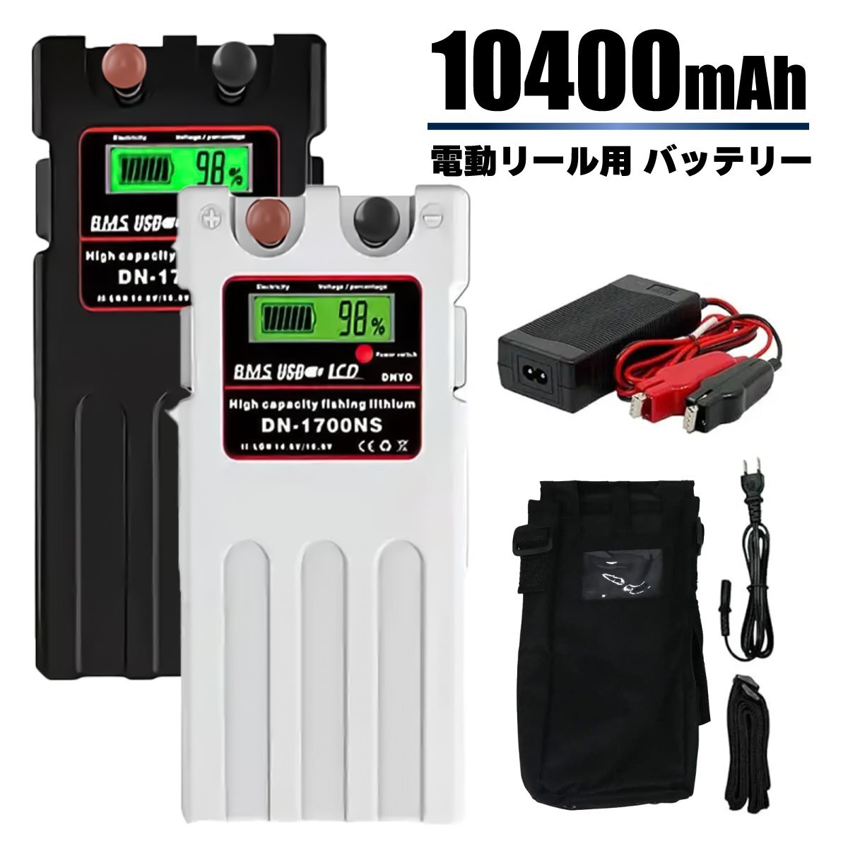 2個◆1年保証◆ ダイワ シマノ 電動リール スーパー リチウム バッテリー 充電器 カバーセット 14.8V 10400mAh パナソニックセル 白黒