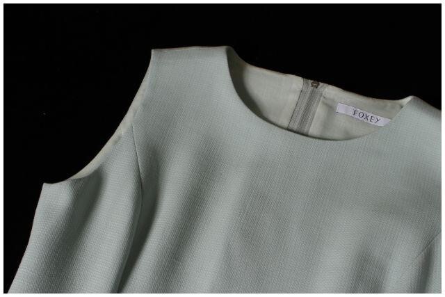 フォクシー FOXEY 17SS ワンピース ドレス ノースリーブ ひざ丈 ティアード 40 青 ブルー 36489 /sa0425 レディース