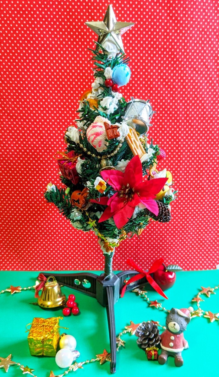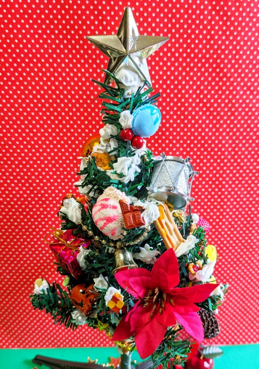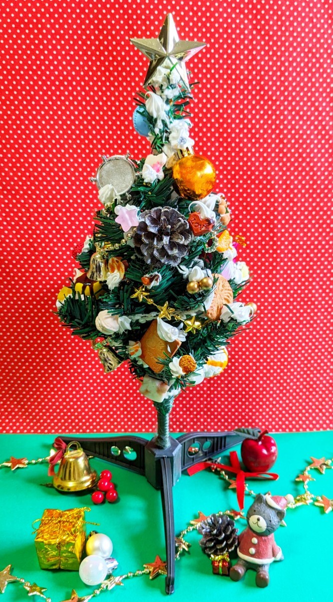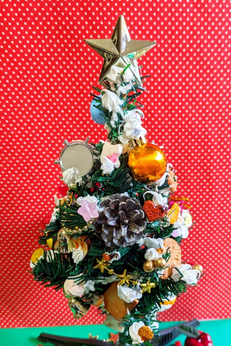 クリスマス飾りの中にスイーツデコを盛り込んだ
