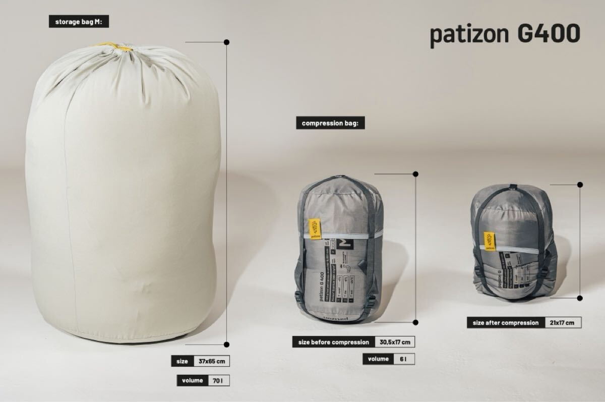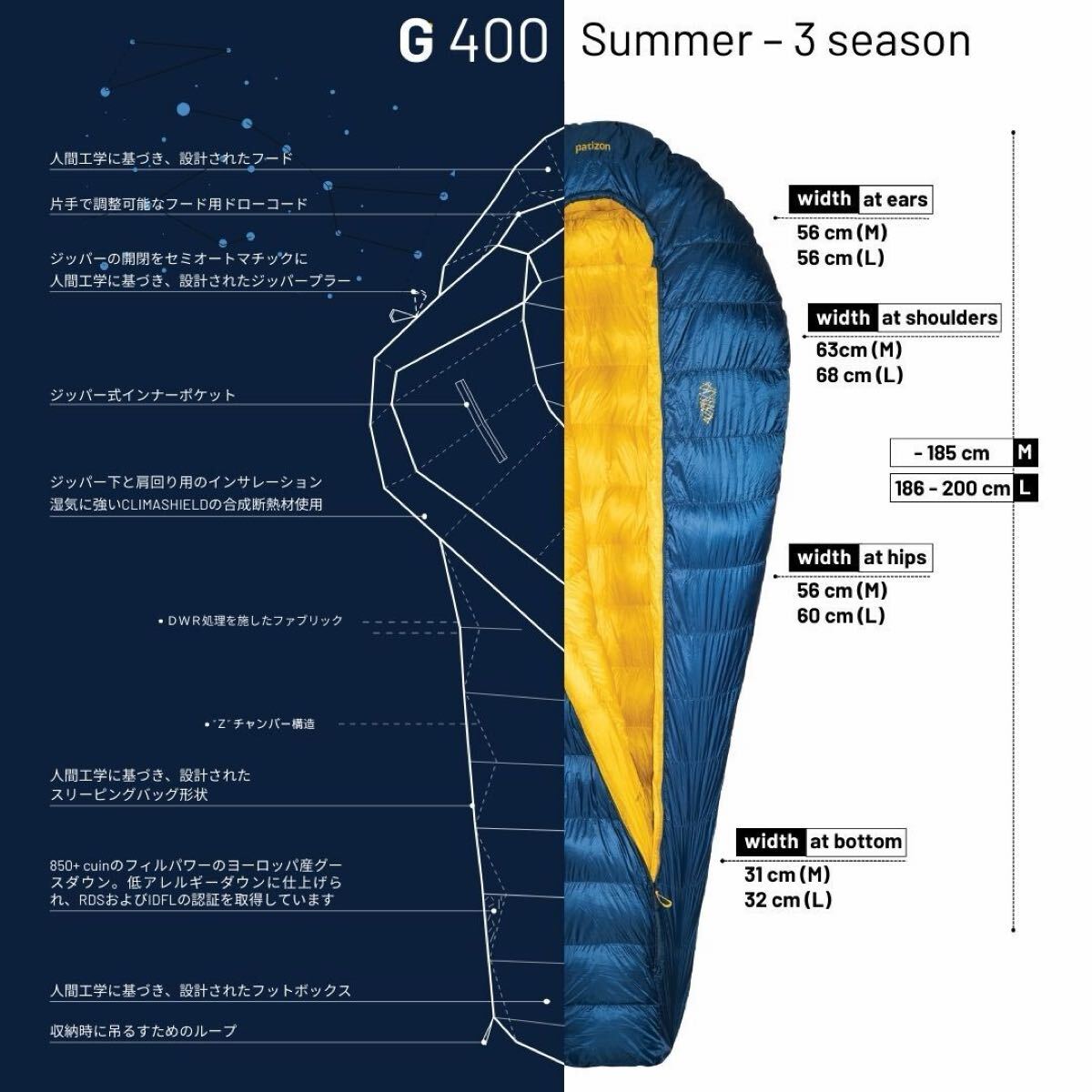 Patizon G 400 - THE LIGHTEST 3SEASON BAG gold/silver 寝袋 シュラフ グース ダウン UL 冬キャンプ 登山 雪山
